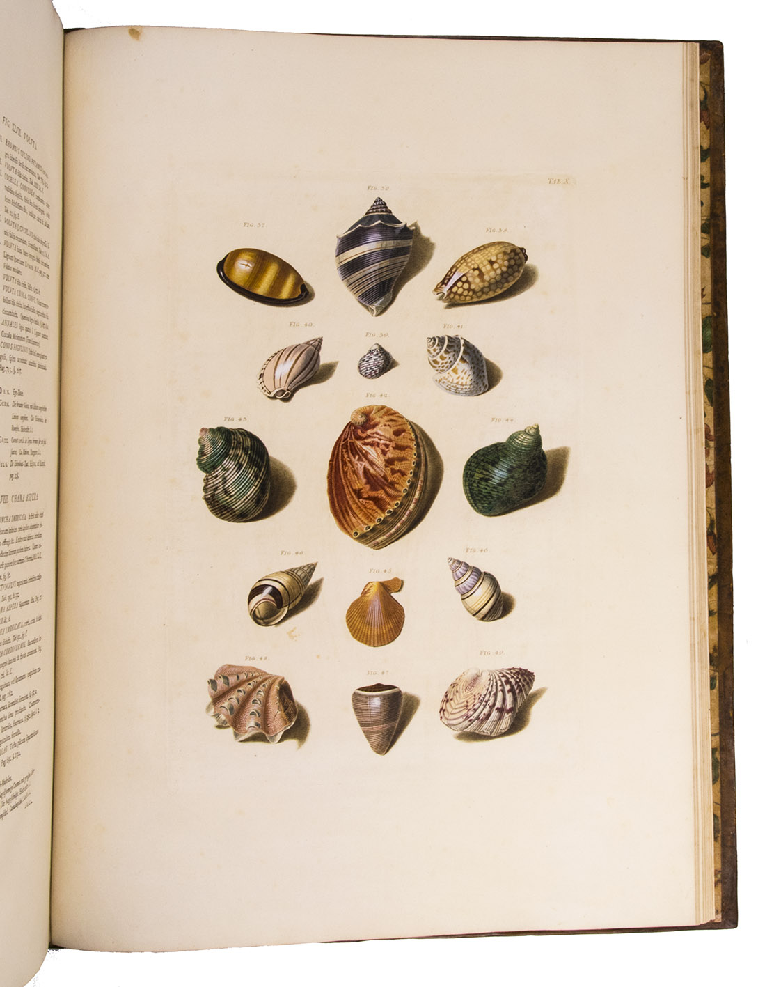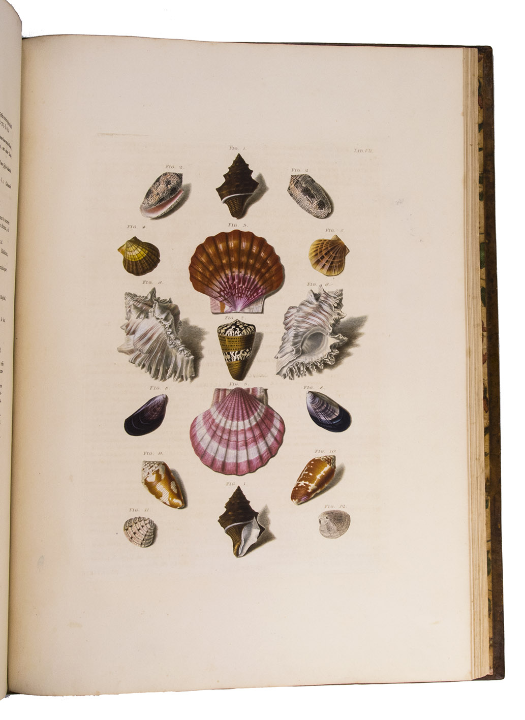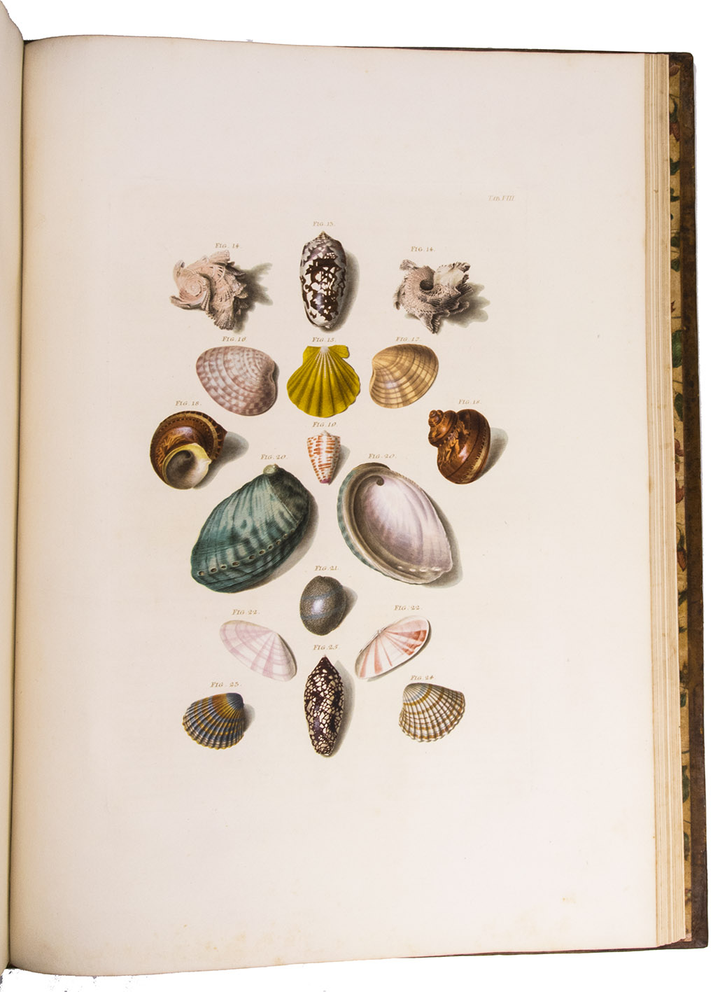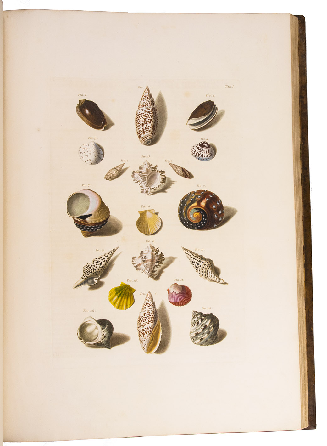 Magnificent and luxurious shell book with 12 enormous plates showing about 205 finely engraved and beautifully and subtly hand-coloured images of 145 shells of snails, mussels and other shellfish (gastropods and bivalves) painted and engraved by Franz Michael Regenfuss from originals in a large number of royal, private and public collections. Regenfuss's wife Margaretha Helena Ludwig executed most of the colouring, with some figures by Gabriel Müller and Johan Maurits Leyh. It too is executed beautifully and accurately. The book is especially rich in Asian shells ("most" according to Van Benthem Jutting) but also includes West Indian, South African and European examples. They are nearly all marine species, but there is at least one land snail. Van Benthem Jutting notes that the book "appears but very seldom in booksellers' catalogues".