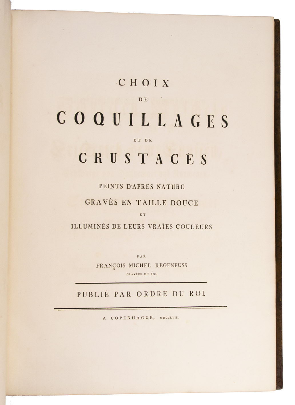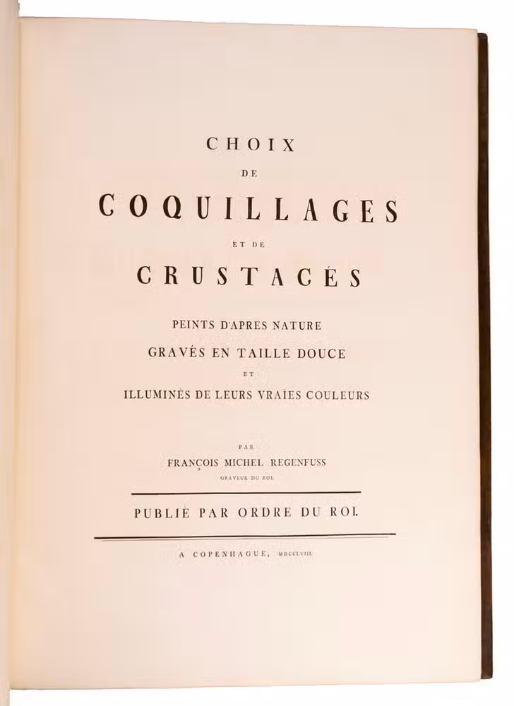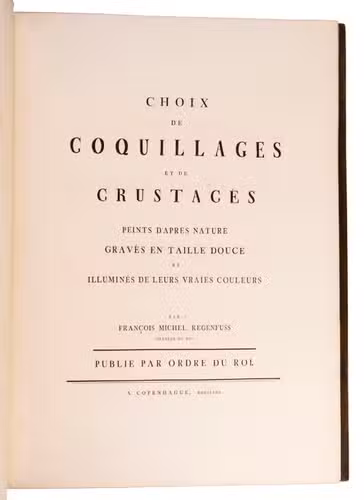 Auserlesne Schnecken Muscheln und andre Schaalthiere auf allerhöchsten Befehl seiner Königlichen Majestät nach den Originalen gemalt, in Kupfer gestochen, und mit naturlichen Farben erleuchtet ...|Choix de Coquillages peints d'apres nature gravés en taille douce et illuminés de leurs vraïes couleurs ... Publié par ordre du Roi.