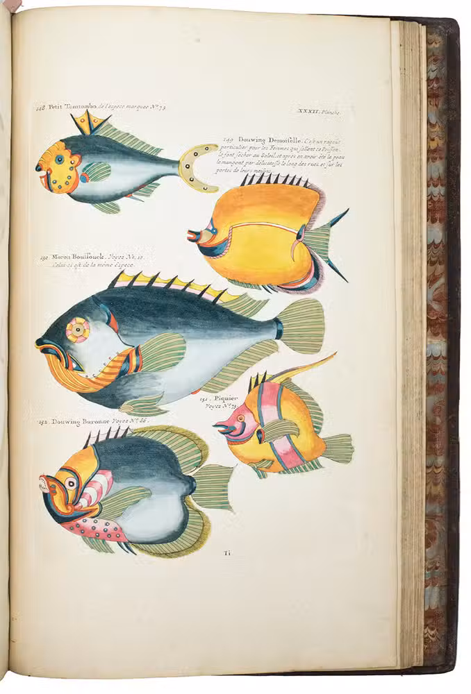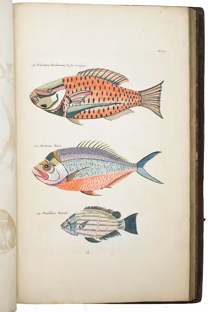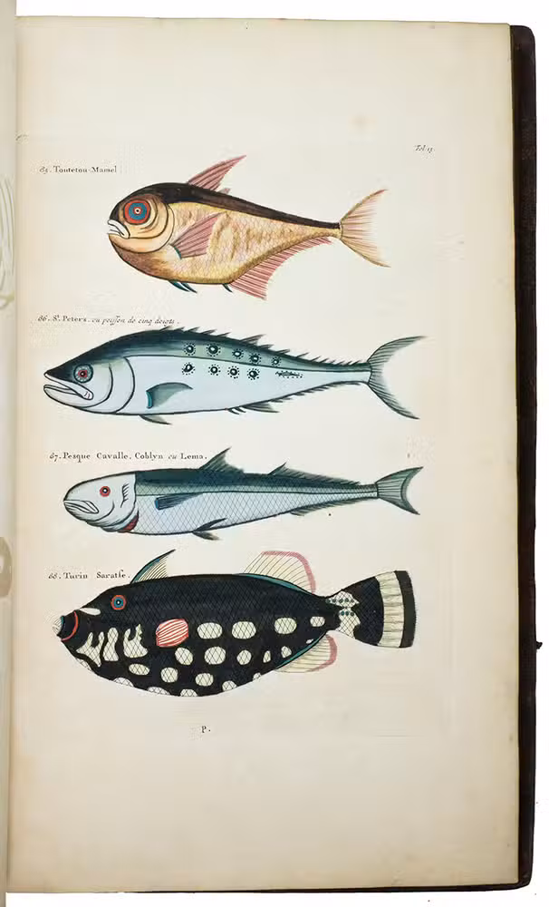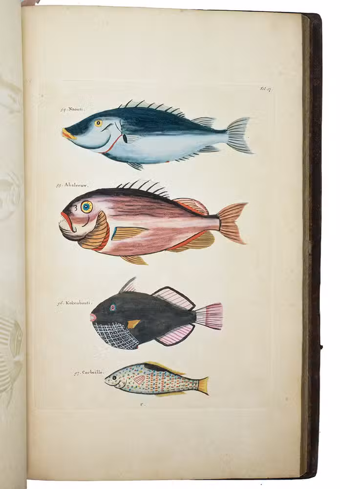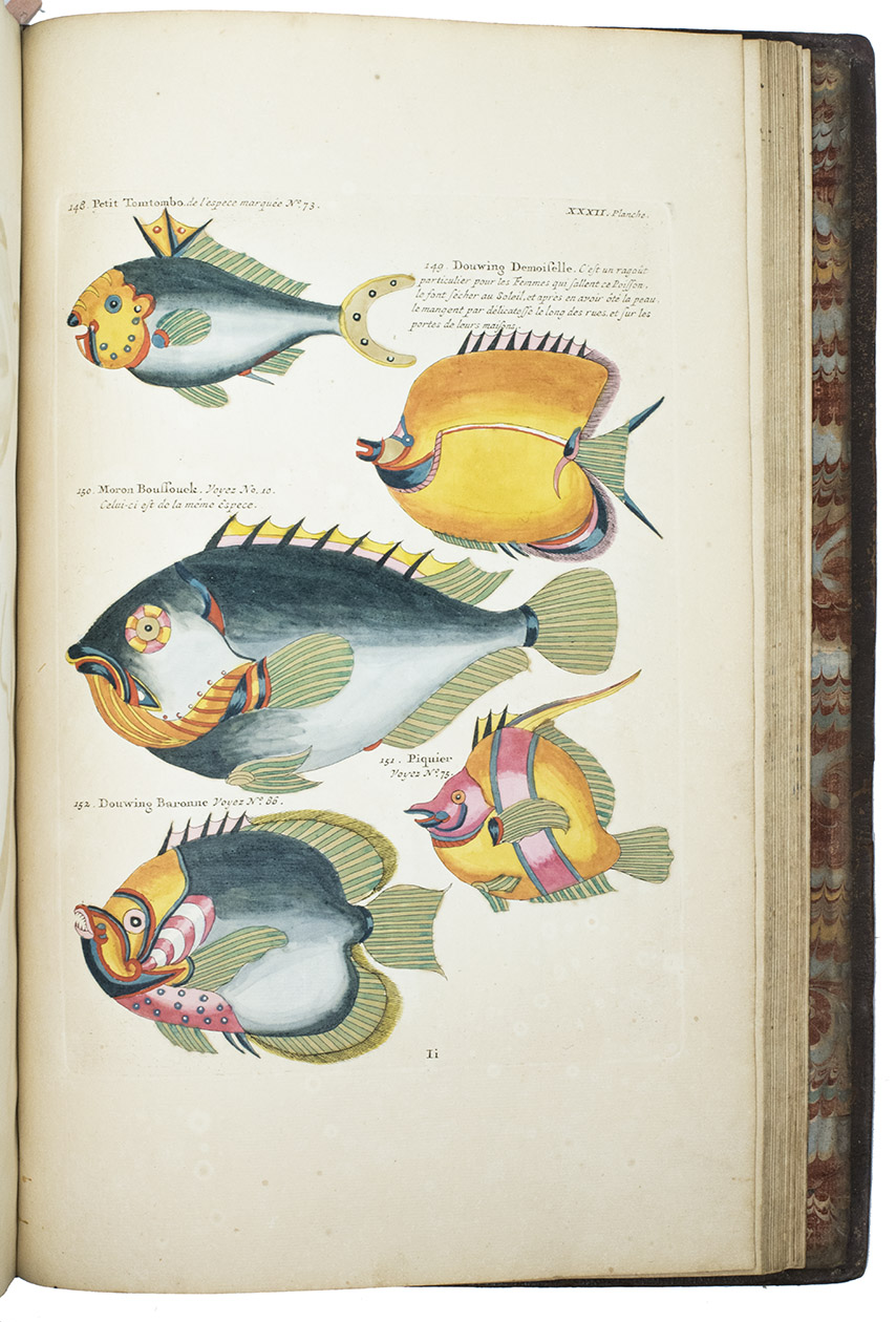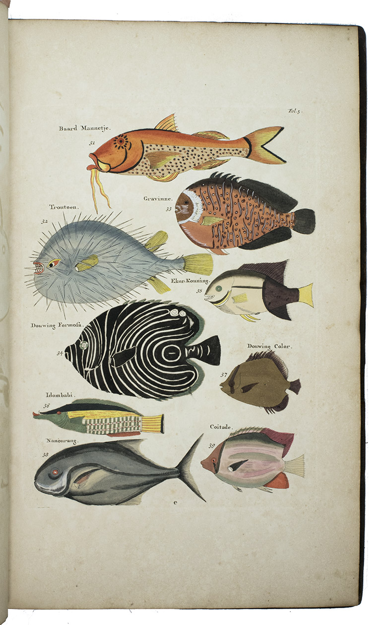 The Amsterdam publisher and bookseller Louis Renard compiled this collection of ichtyological illustrations by copying the sets of drawings which were brought to Amsterdam by Frederik Julius Coyett, the son of the governor and ambassador of Ambon and Banda, Balthasar Coyett. The drawings in the first part were copied after the collection of Balthasar Coyett. The illustrations in the second part were copied by Samuel Fallours, a soldier in the service of the Dutch East India Company who started drawing marine life in the East Indies for the governors, after those in the collection of Andriaen van der Stel, governor of the Moluccas.