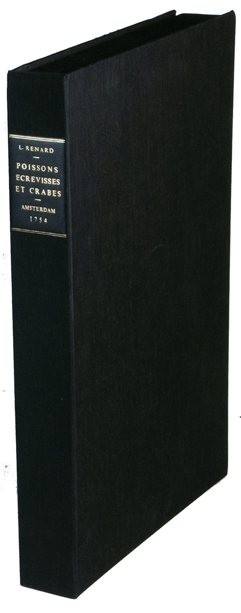 Spine and joints professionally restored, preliminaries a little foxed, some minor browning (especially in volume 1), but overall in good condition with brightly coloured plates. One of 35 known copies of a rare ichthyological work. Landwehr, Coloured plates 159; Nissen, ZBI 3361; Nissen, Schone Fischbucher 103; Sabin 69600; cf. Grace Costantino, "Renard's book of fantastical fish" (2016) on https://blog.biodiversitylibrary.org; Julie Gardham, "Louis Renard: Poissons, ecrevisses et crabes" (2002) on www.gla.ac.uk; Theodore W. Pietsch, Fishes, crayfishes, and crabs ... (1995), pp. 22-26.