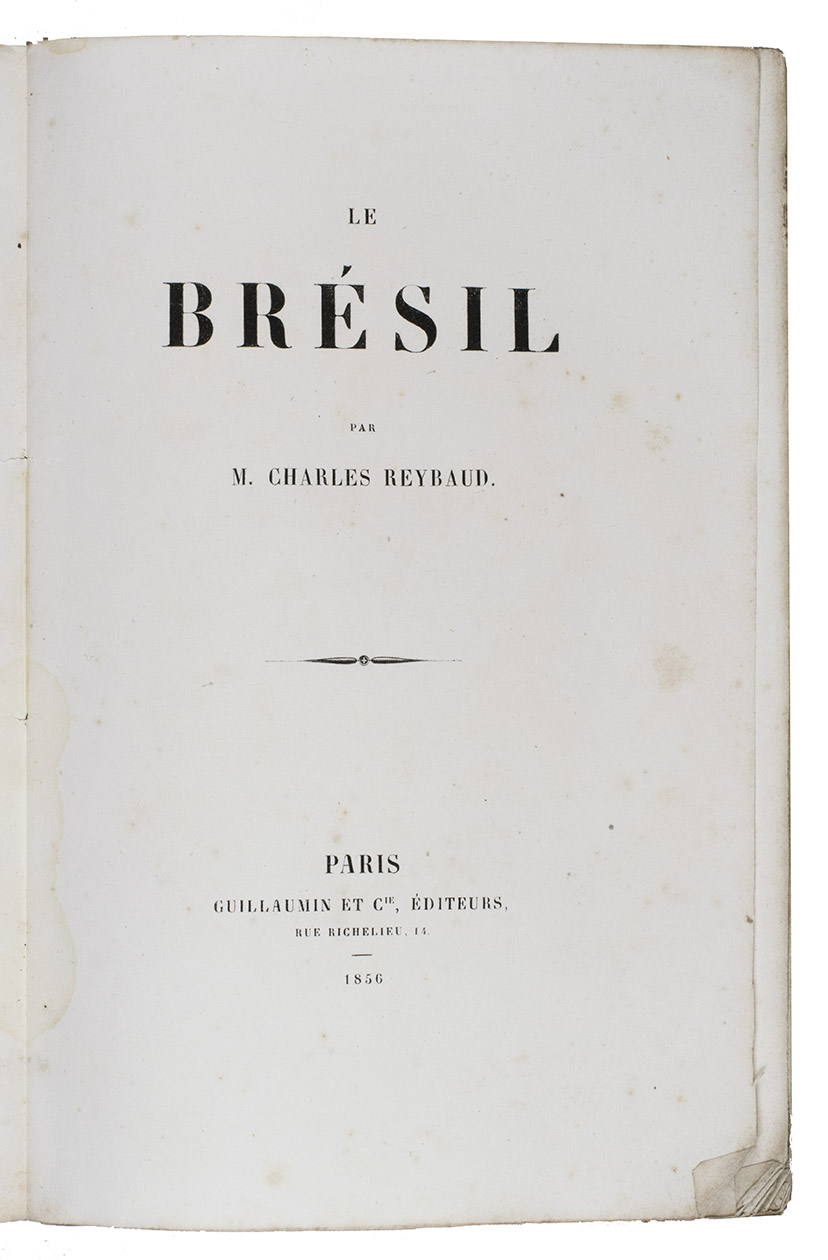 "There is only one thing that does not change in Brazil, it is the ardor of the imperial government to create and to improve". The first edition (1801-1864) of Charles Reynauds political and social overview of Brazil during the first thirty years since its declaration of independence from Portugal in 1822. The French writer and diplomat Reynaud was full of admiration for the developments that had taken place in Brazil since the renounciation of the links with Portugal and the establishment of an independent kingdom. Reynauds work is deeply concerned with the development of the young country. He traces the roots of the Constitutionalist Revolution that erupted in Portugal in the early 1820s and the implications that this movement had on Brazil. He furthermore analyses the industrial and agricultural development, including railroads, another foreign affairs, and immigration. Reynaud was a modern thinker of his time and his critical views of the European colonisation permeat the book. He highlights the many negative effects that these policies had on the development of Brazil and its people. He was also a monarchist, calling Brazil, among all other independent states of the Americas, "the only state which has had the good sense to keep the monarchy". Charles Reybaud served as French consult in Bahia. He had not been to Brazil during the time that he wrote Le Brésil. A German translation of Reybauds work appeared in 1857, printed by Nolte & Köhler.
