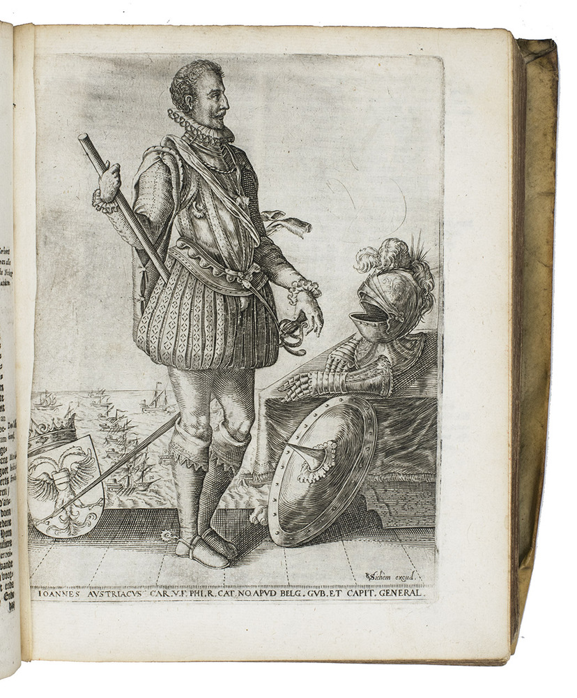 Arnhem, Ian Iansz., 1626. 4to. With engraved title-page and 25 portraits, mostly by C. van Sichem and K. van Sichem. Contempory vellum. [16], 734, [14] pp.