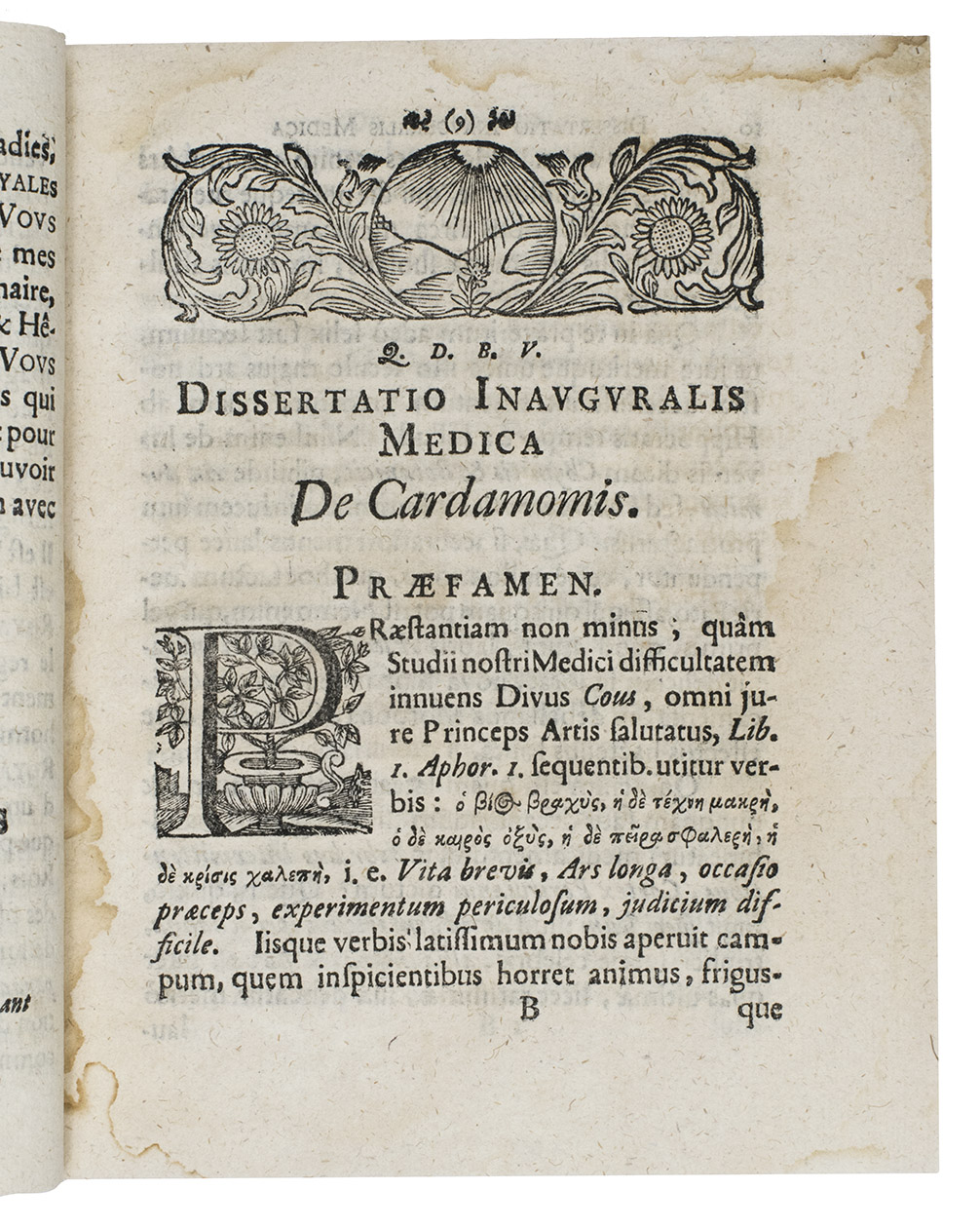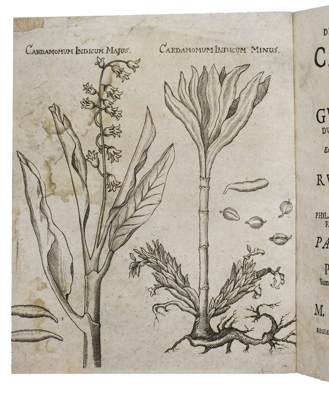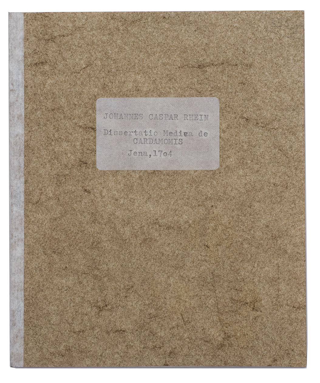 Jena, Christoph Krebs, [dissertation defended 7 August 1704]. 8vo. With an engraved frontispiece illustrating the cardamon plant, a woodcut headpiece and tailpiece. Recent decorated paper wrapper. [8], 44 pp. including the frontispiece.