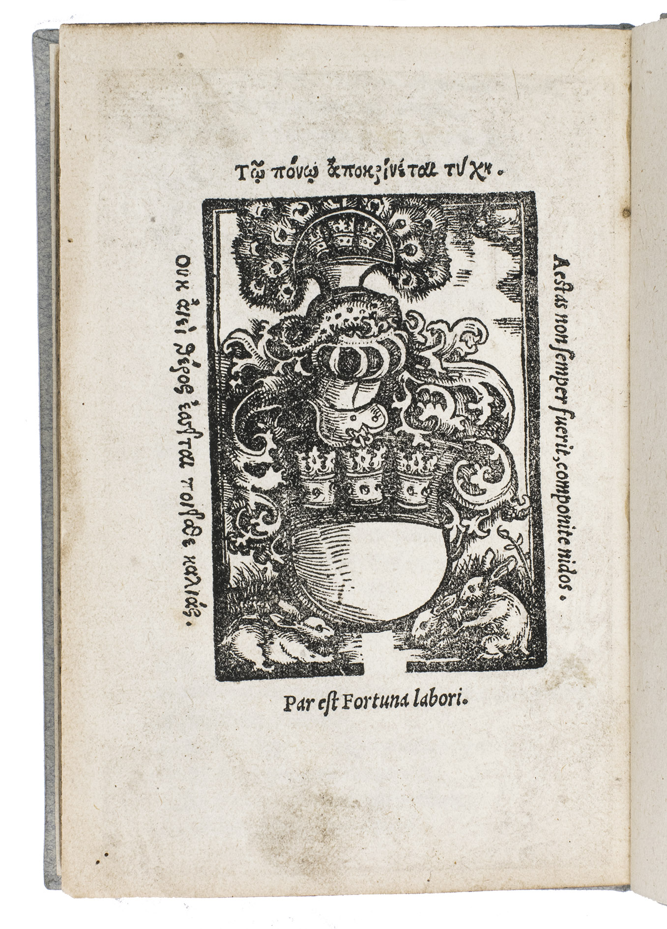 Cologne, Petrus Quentell, 1528. Small 8vo. With a richly decorated architectural woodcut border on the title page, a large woodcut printer's device on the final leaf, four decorated woodcut initials, and four woodcut headpieces. Modern blueish-grey paper over boards. [7], "92" [=94], [3] pp.