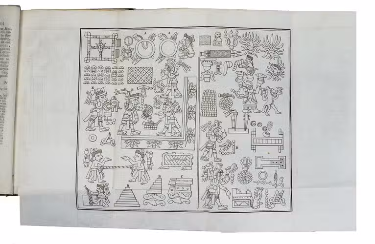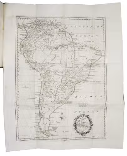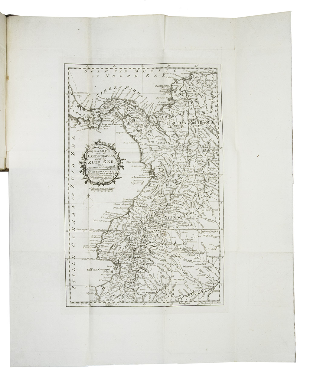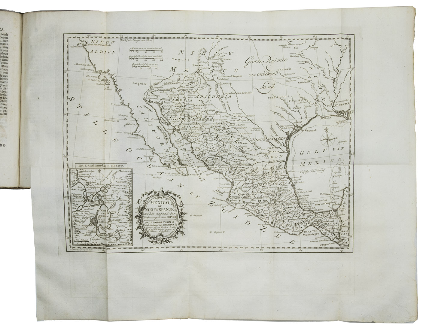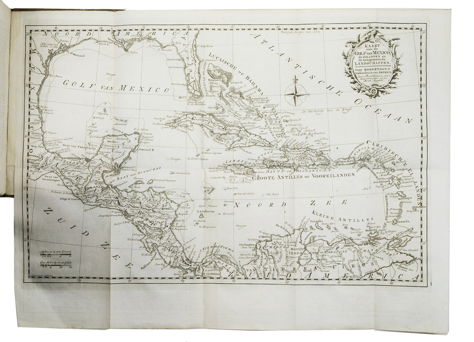 Amsterdam, Yntema & Tieboell, 1778. 4 volumes. 8vo. With woodcut title-vignettes; 4 folding maps by Thomas Kitchin (1718-1784), representing (1) the Gulf of Mexico with adjacent countries and islands; (2) Mexico or New Spain; (3) South America and (4) Central America and the South Sea; and a folding plate showing part of the 14th-century Mixtec Codex Vindobonensis. Uniform contemporary half calf. XXXII, 378; 307; XIV, 15-439; IV, 7-322, [65] pp.