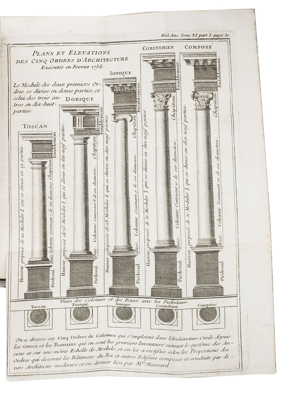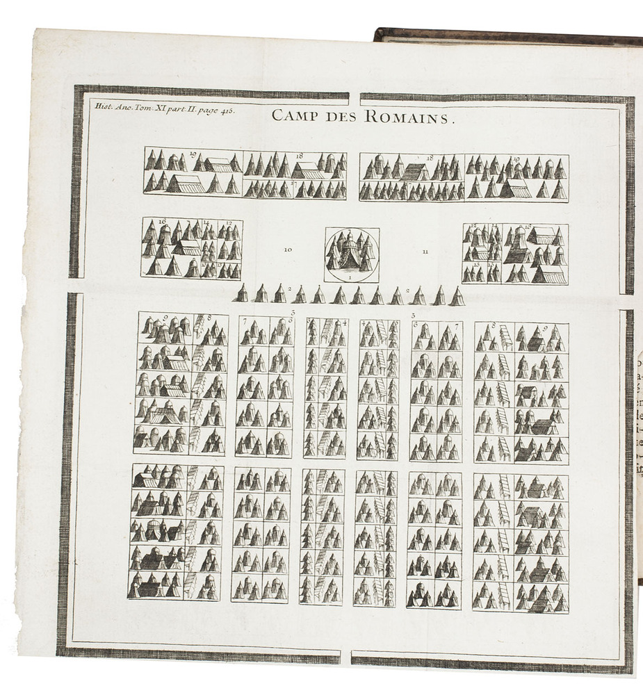 Paris, printed for the widow of Estienne & her children and the Estienne brothers; by (the widow of) F.A. Quillau and the widow of Simon, 1748-1769. 13 volumes bound as 14. 12mo. With 3 engraved maps, 2 engraved folding plates and 1 engraved folding plan. Contemporary mottled calf, richly gold-tooled spines and binding edges; only volume 11 (bound as 2 volumes) in a different but closely matching binding. ca. 600 pp. per volume