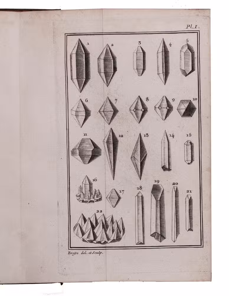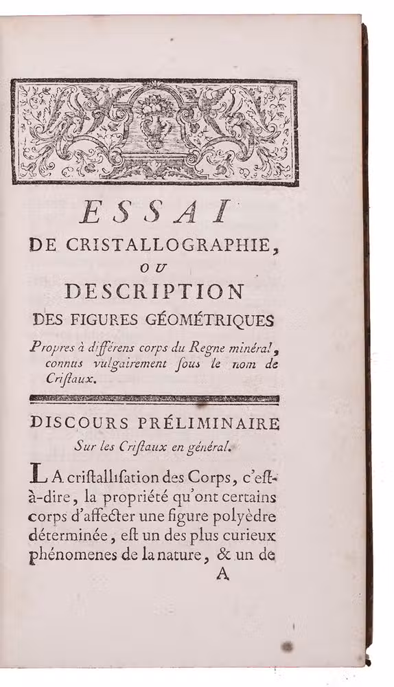 Essai de cristallographie, ou description des figures géométriques, propres à differens corps du regne minéral, connus vulgairement sous le nom de cristaux.