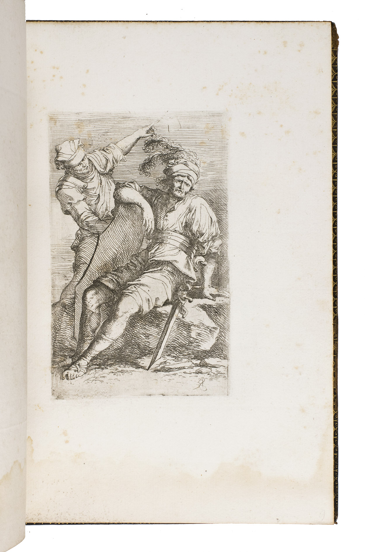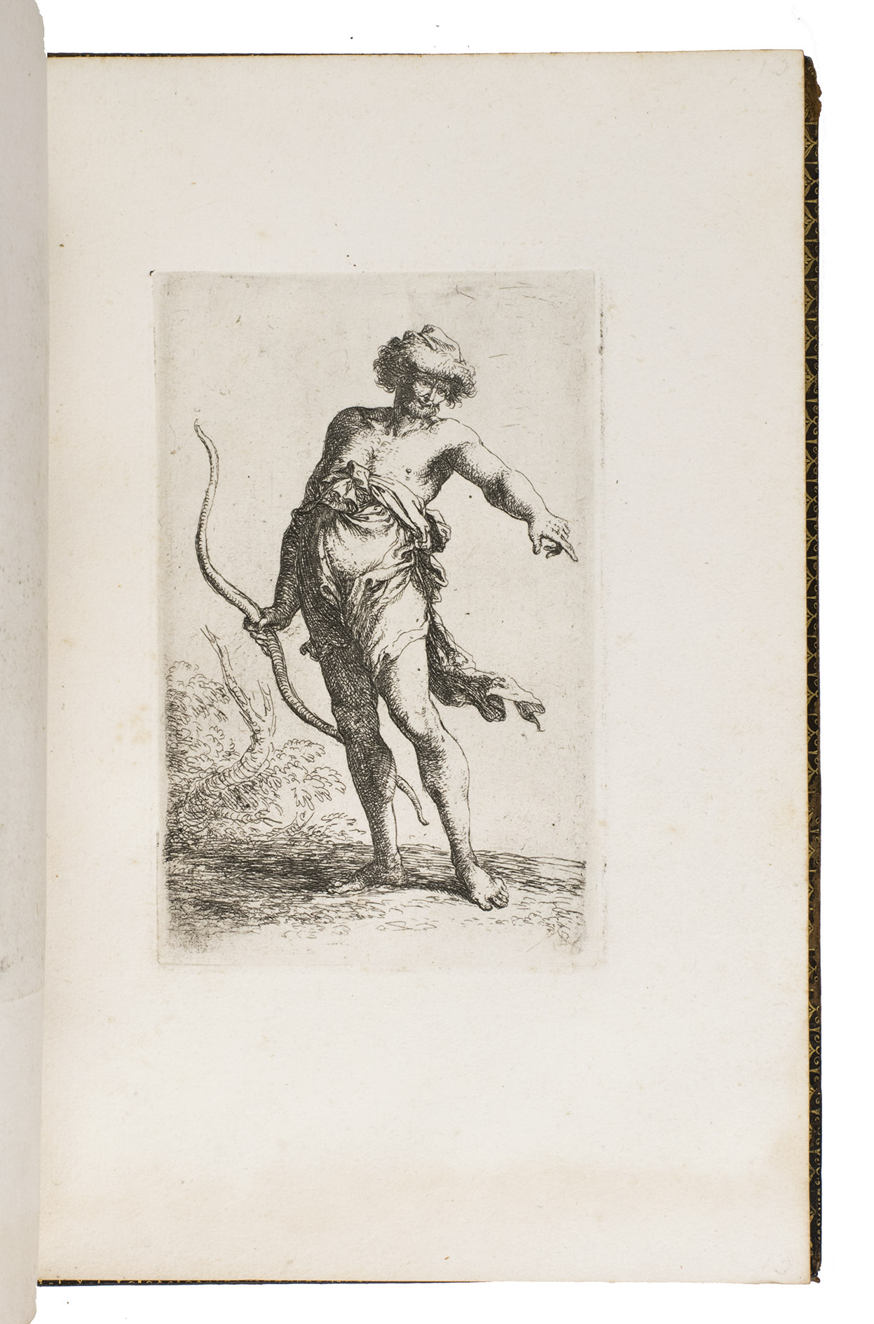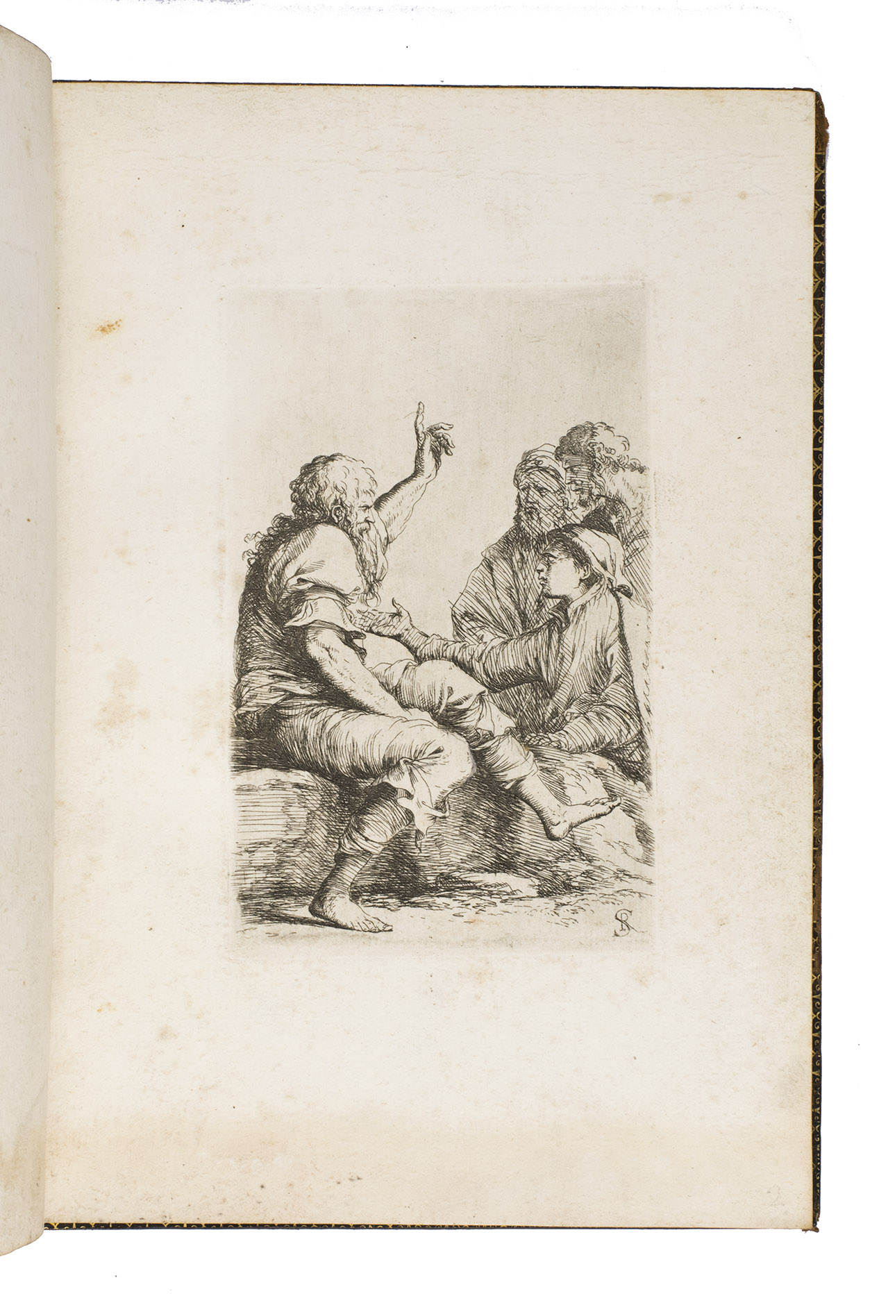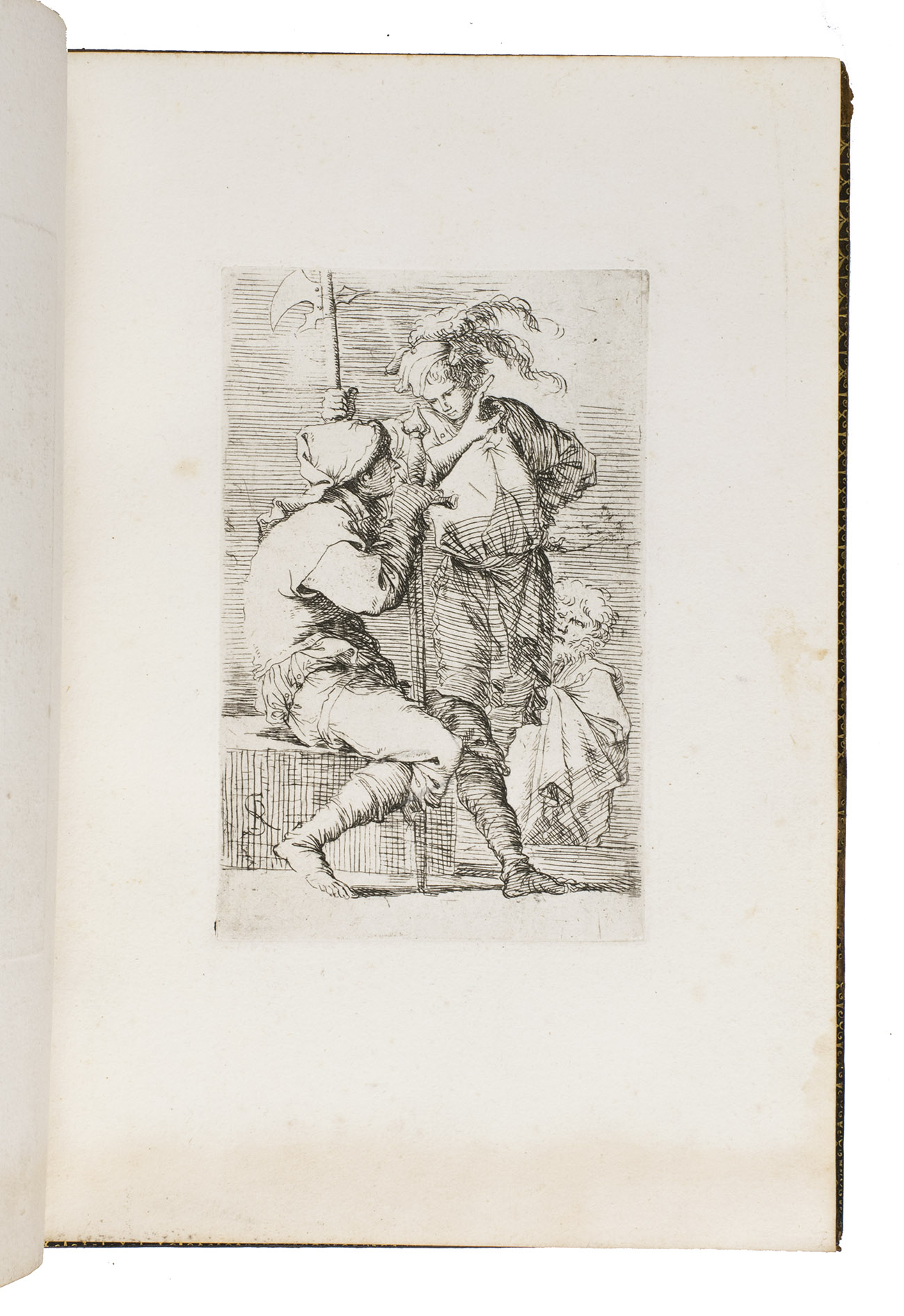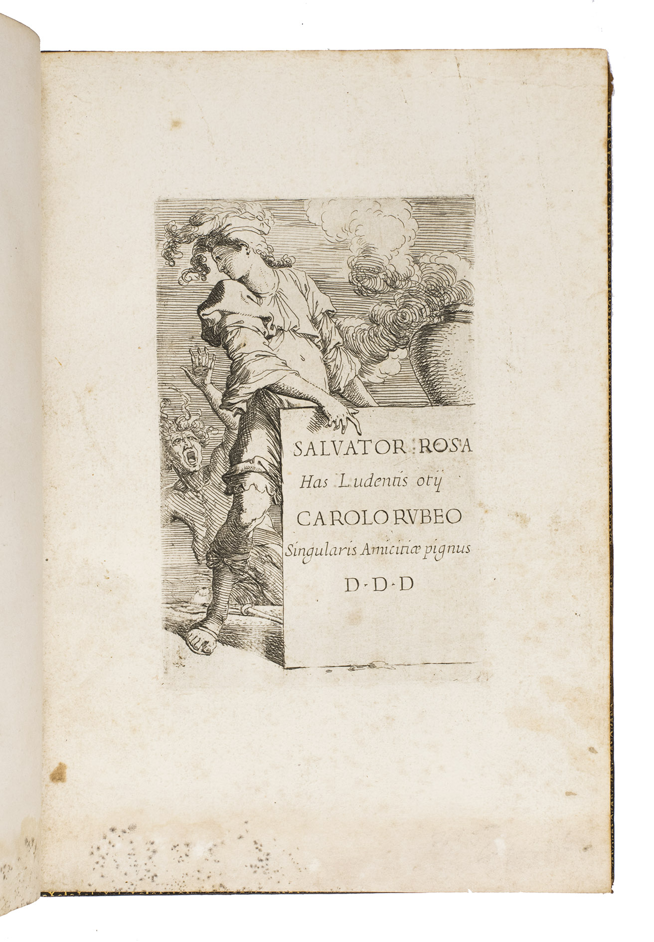 With the bookplate of Francisco Xavier O'Neill d'Avillez (1903-1967) mounted on the front pastedown. The corners are bumped, the joints are weakened, but the structural integrity of the binding is still intact, the boards are slightly scratched. A water stain in the lower margin of the leaves, not affecting the etchings, the leaves are lightly foxed. Otherwise in good condition. Wallace, the etchings of Salvator Rosa; cf. Bartsch XX, cols. 167-174; Hayward Gallery, Salvator Rosa (catalogue for the 1977 exhibition); Nagler 15, pp. 132-150; Thieme/Becker 29, pp. 1-3.