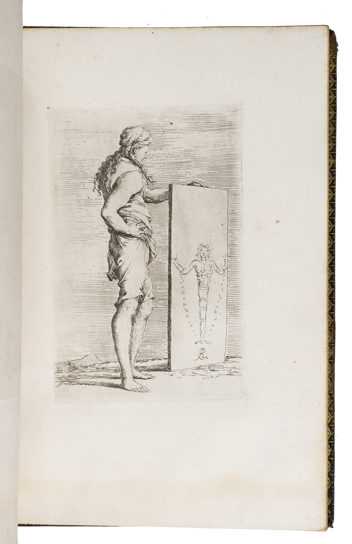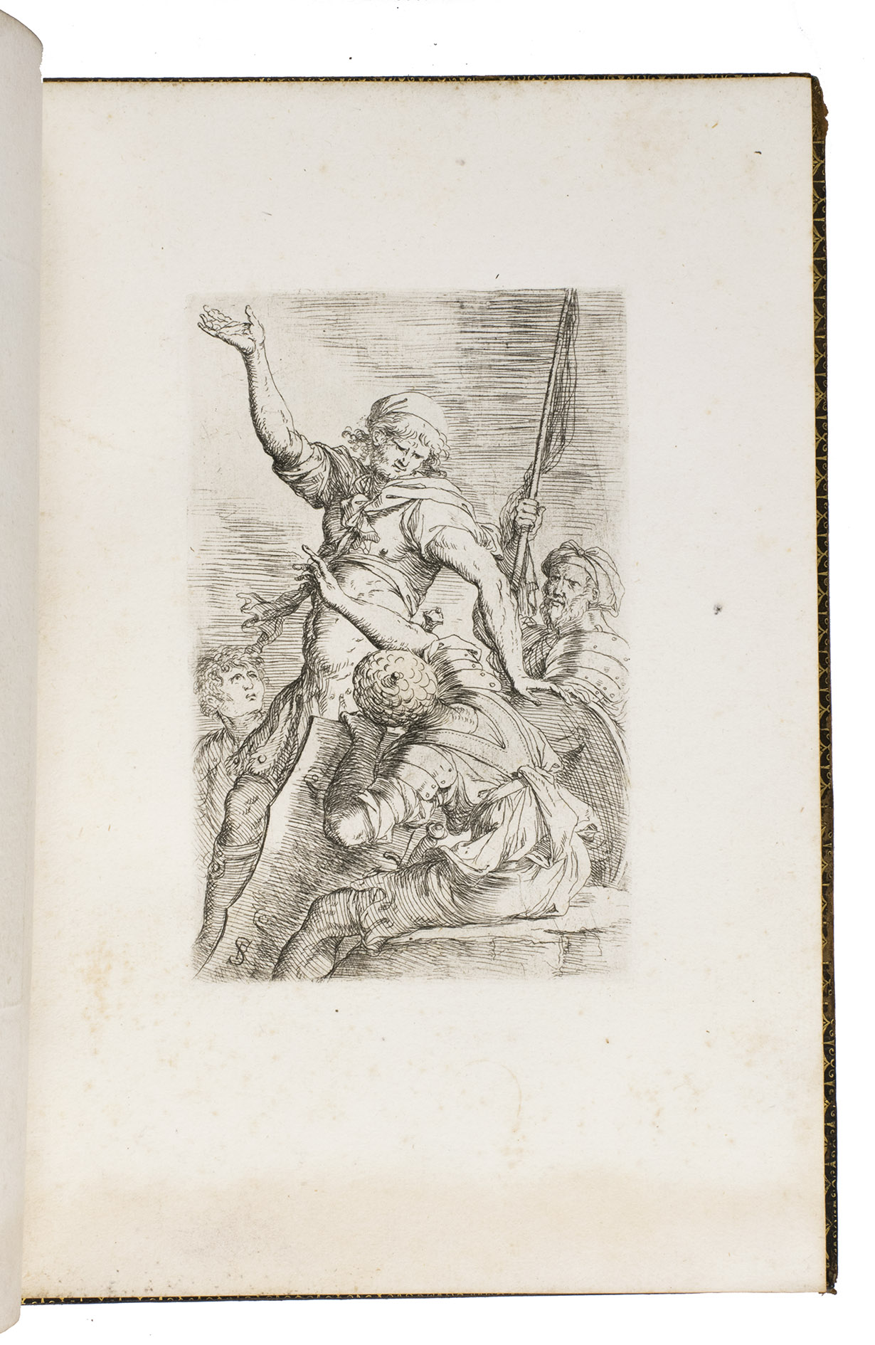 [Rome, ca. 1725]. 4to. With an etched frontispiece and 59 full-page etchings (of which 1 duplicate), all signed in the plate. Mid- to late 18th-century gold-tooled mottled calf. [60] ll.