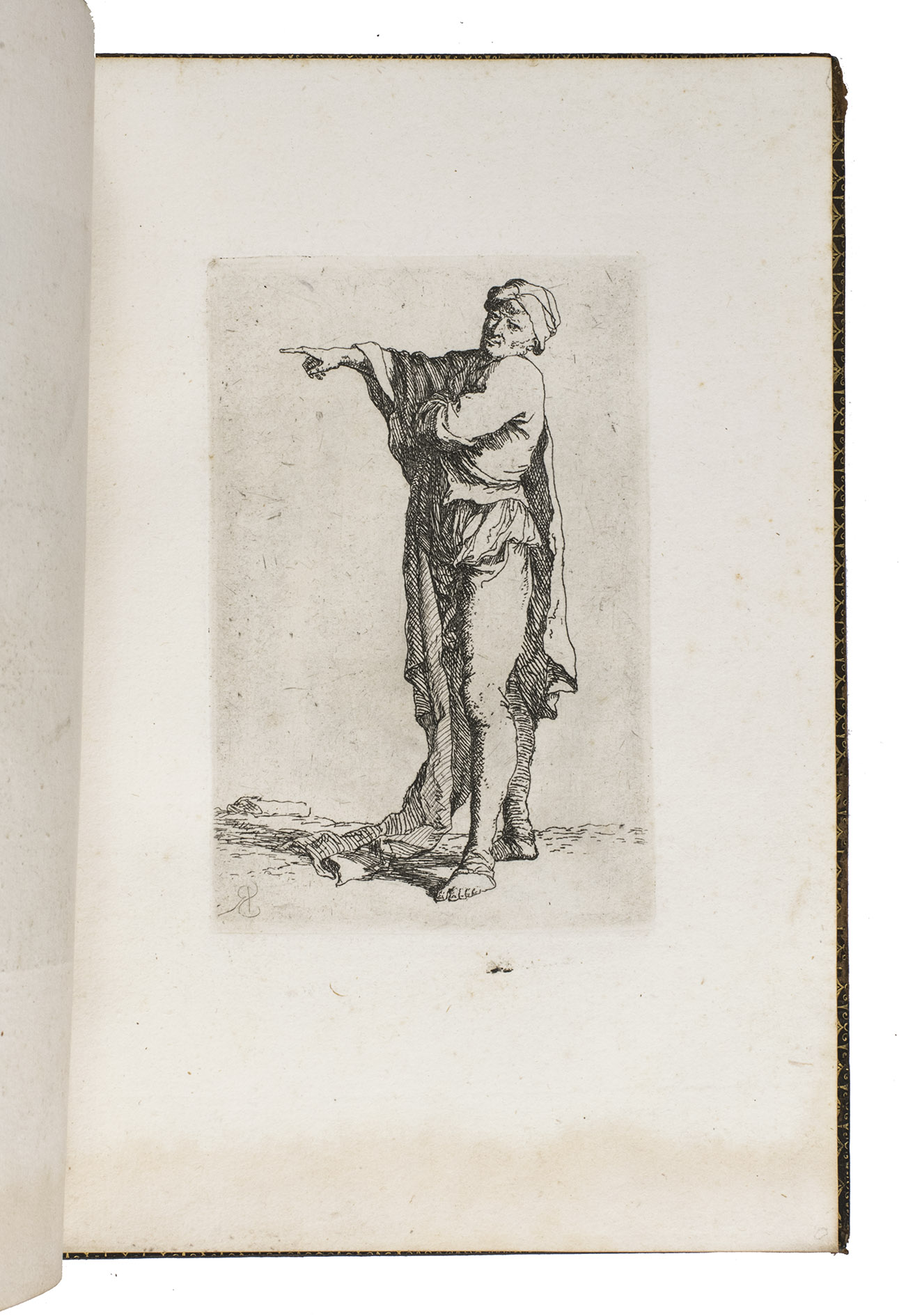 Exceptionally rare series of 60 etchings printed from the original copperplates, in beautiful dark impressions, and with wide margins. The etchings are part of Salvator Rosa's famous Figurine series, which "were so widely copied and forged that they can lay claim to being among the most imitated prints in the history of graphic art" (Wallace). As such, many collections of the series feature later copies, imitations, or variations. The present collection, however, was printed from the original plates.