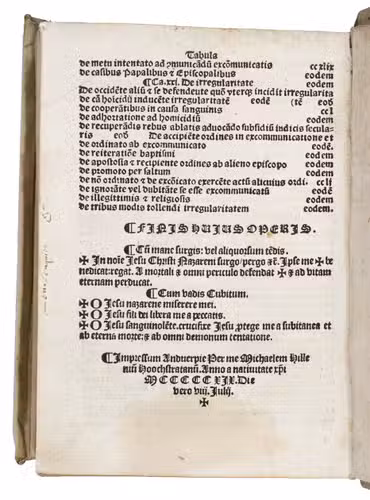 (Colophon: Antwerp, Michiel Hillen van Hoochstraten, 8 July 1519). Small 8vo (14 x 10 cm). Title-page in red & black with a red woodcut rebus of the author's name at the foot. 17th-century(?) vellum with the vellum. 251, [5] ll.