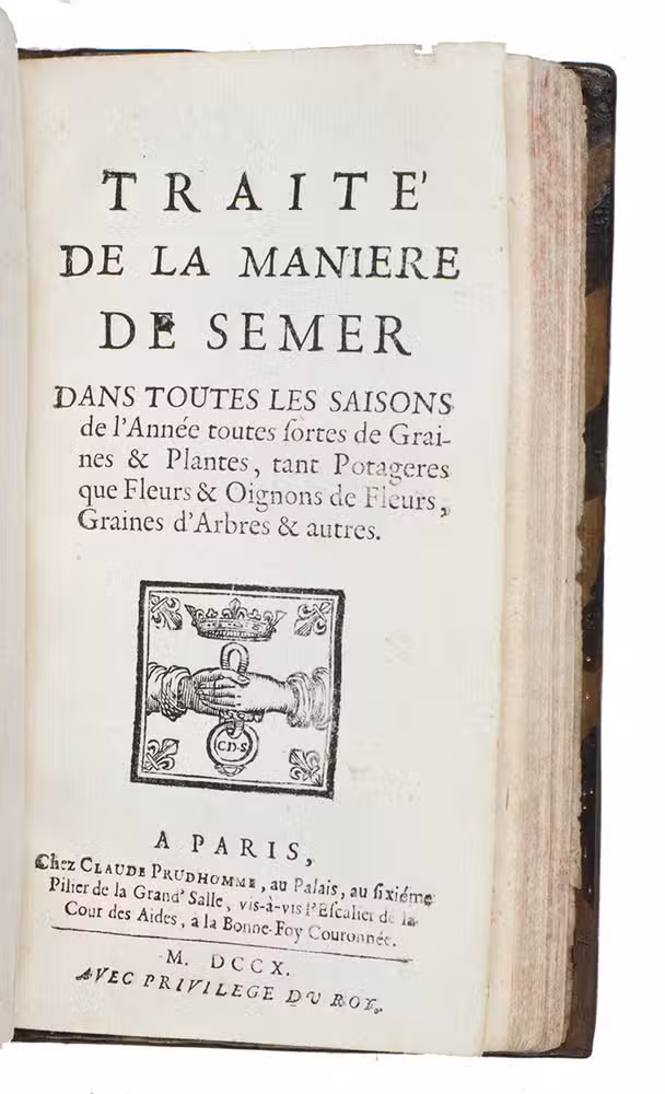 (3) [C., J.?]. Traité de la maniere de semer dans toutes les saisons de l'année toutes fortes de graines & plantes, tant potageres que fleurs & oignons de fleurs, graines d'arbres & autres.
