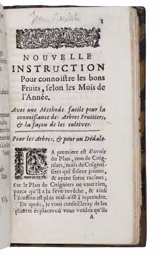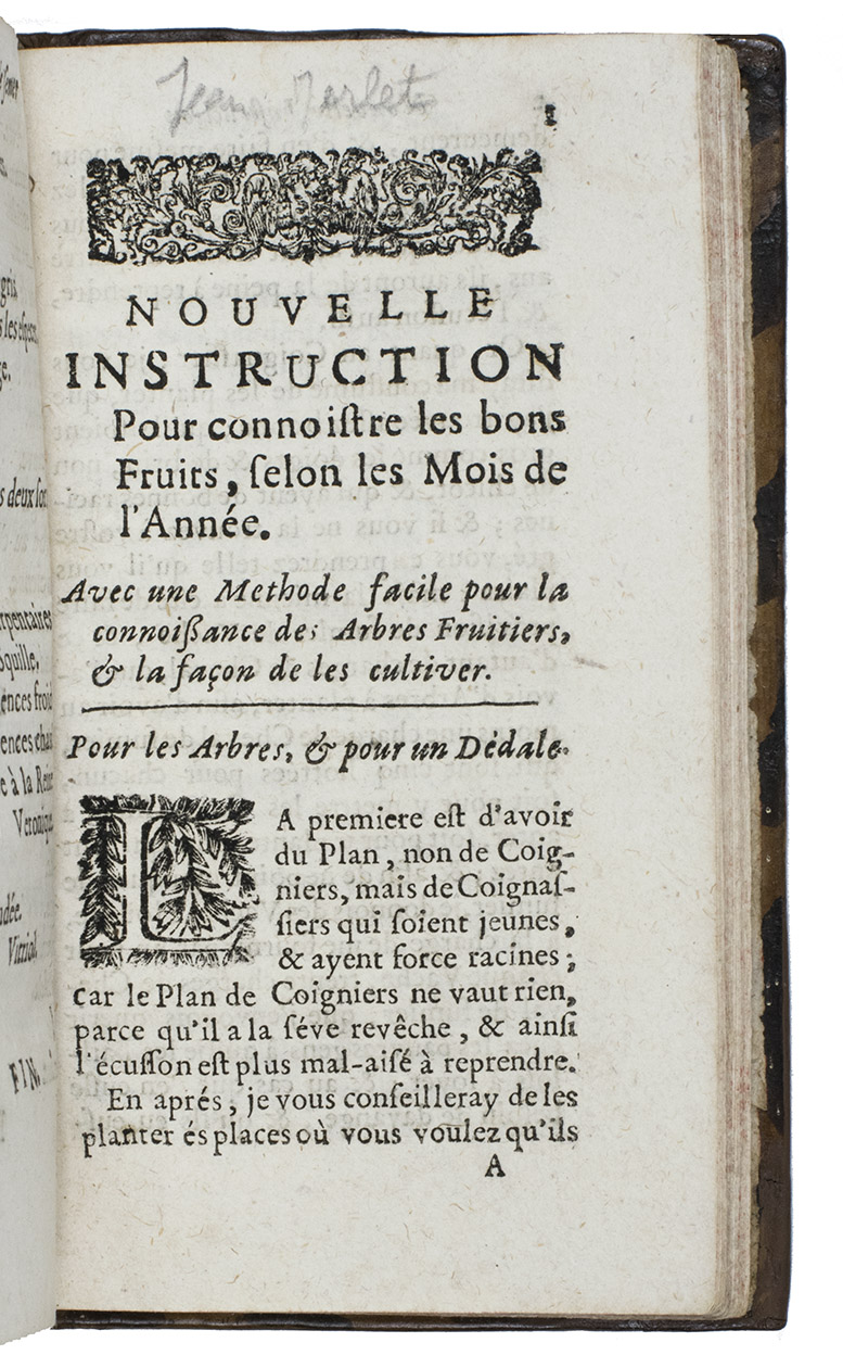 (4) [Jean MERLET, and/or Claude SAINT-ESTIENNE?]. [Drop-title:] Nouvelle instruction pour connoistre les bons fruits, selon les mois de l'année.