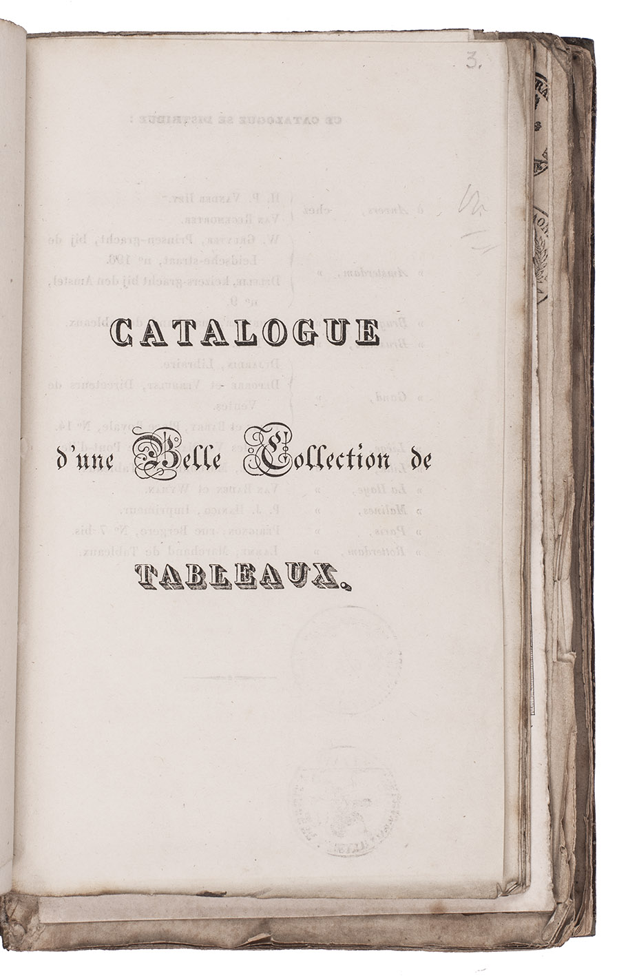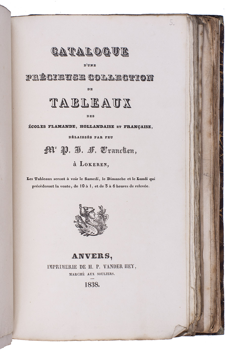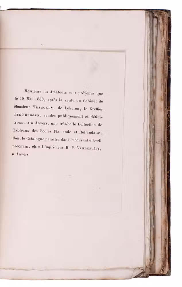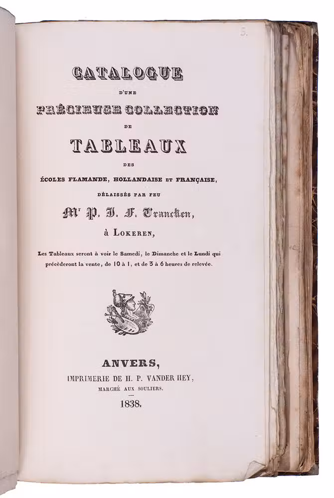 (5) VRANCKEN, Petrus Jacobus Franciscus. Catalogue d'une précieuse collection de tableaux des écoles Flamande, Hollandaise et Française délaissés par Mr. P.J.F. Vrancken à Lokeren.