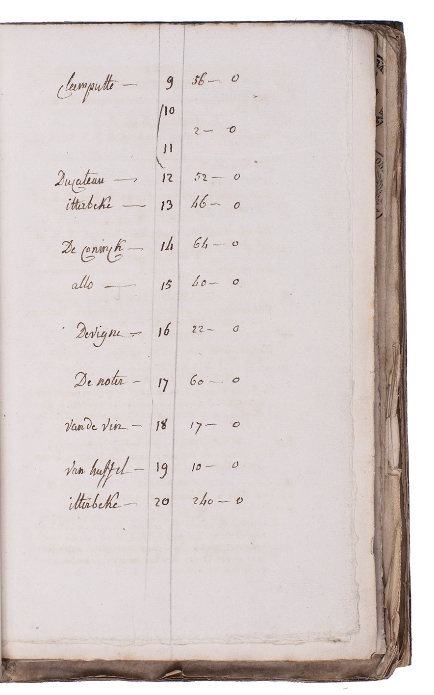 Ghent, Librairie Générale de H. Hoste, 1840. 6 catalogues in 1 volume. 8vo. Interleaved. Contemporary half tanned sheepskin. [2], 30; [2], III, 68; 32; 36; VI, [2], 48; XX, 109 pp.