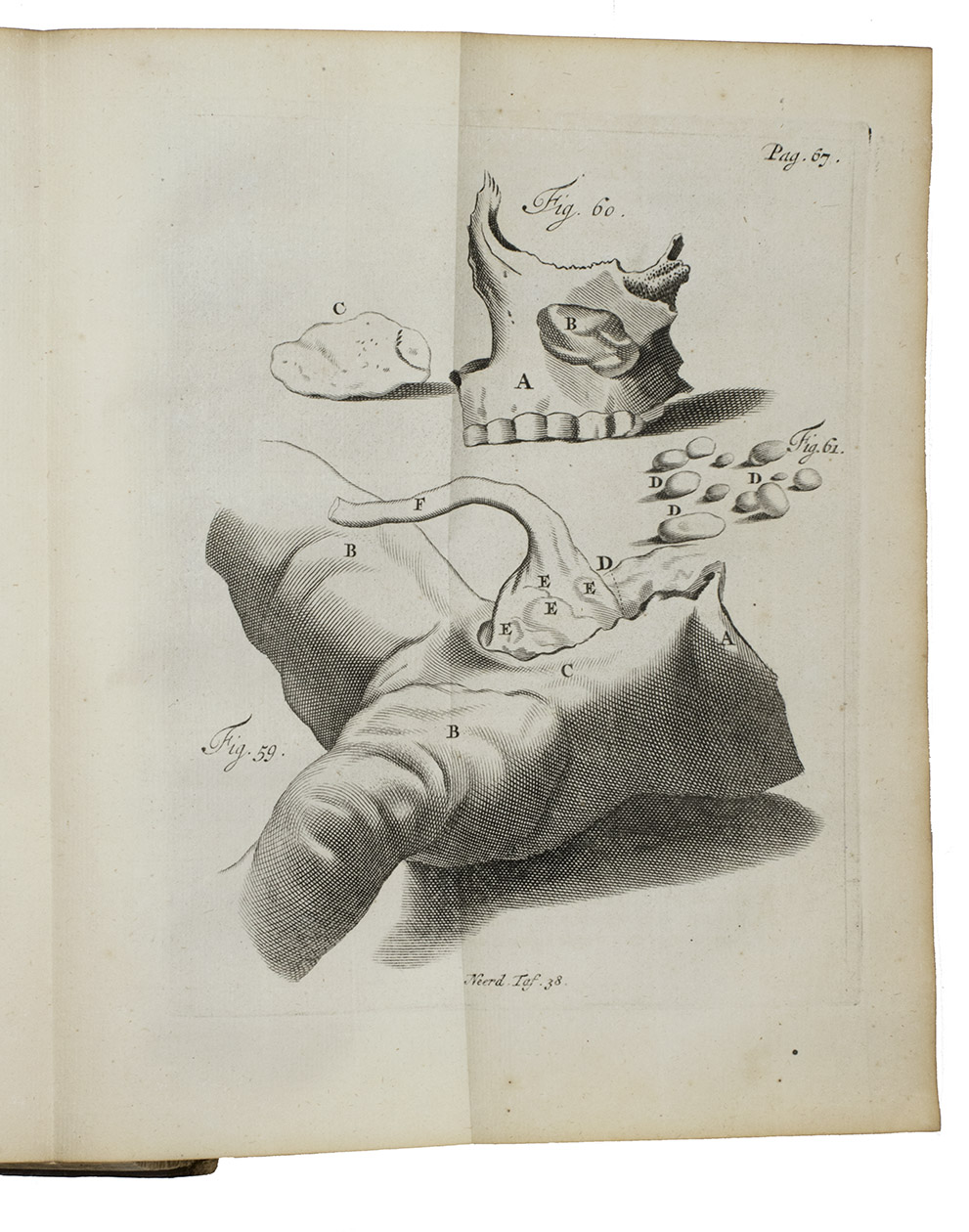 Good copy. Hirsch, vol. V, p. 131; DSB 11 & 12, p. 41; Bibl.Med.Neerl. p. 63 (Latin edition "Opera Omnia", 1737, in 5 vols.); Parkinson pp. 297-298 (Latin edition: 13 works, incl. 11 letters); Balsiger, B.J. The Kunst- und Wunderkammern: a catalogue raisonné of collecting in Germany, France and England, 1565-1750 (Pittsburgh, 1970), p. 384 (for parts on cabinets); this Dutch edition not in Garrisson-Morton; not in Norman.