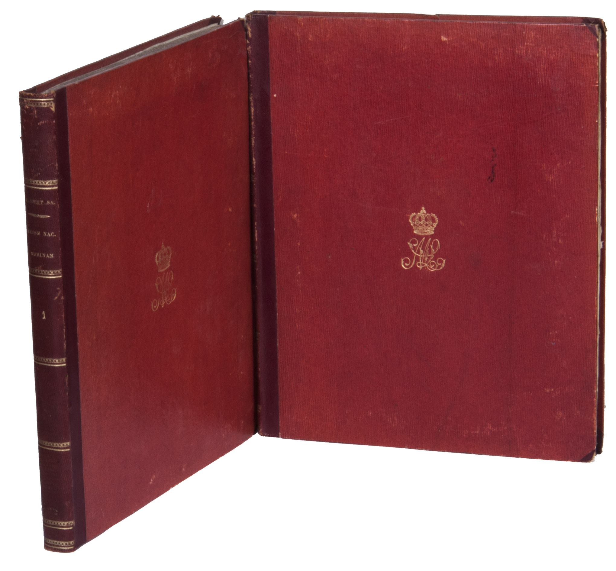 With the 16-page-long introduction of M. Breslauer's catalogue tipped in in the first volume and a small clipping relating to Breslauer's catalogue and the provenance of the present work mounted on the front pastedown of volume 1, containing the manuscript note in Dutch: "gekocht sept. 1933". The bindings show very slight signs of wear around the edges and corners of the boards and the spine. Overall in very good condition and with a remarkable provenance. Breslauer, Verzeichnis 50: Naturwissenschaften und Reisen aus der Bibliothek der Kaiserin Marie Louise (1933), 1134; Sabin 74749, note; Tiele 953.
