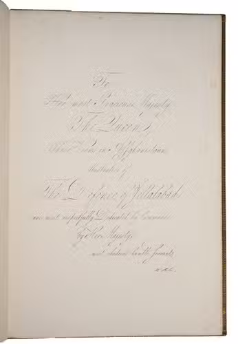Gold-tooled red goatskin morocco, richly gold-tooled turn-ins, gold-tooled board edges, yellow endpapers, gilt edges. Lithographed frontispiece, title-page & dedication plus 5, [1 blank] pp. plus plates.