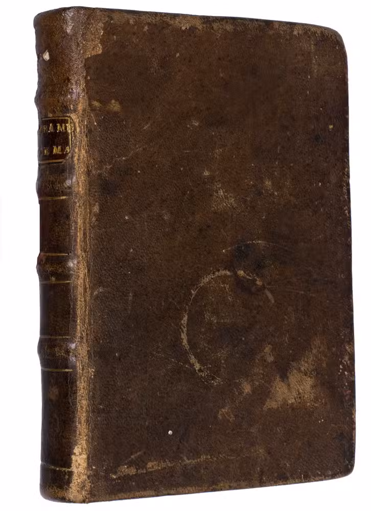 With the bookseller's label of "Livraria Olisipo" in Lisbon mounted on the front pastedown, and a (near-) contemporary owner's inscription on the title page. The binding is rubbed and somewhat stained, the head of the spine is slightly damaged, the endpapers are somewhat foxed and browned, the title page is slightly stained, a very light water stain in the head margin throughout, occasional very light foxing in the margins. Otherwise in good condition. Borba de Moraes I p. 279; Gauz 781/2; Inocêncio 5, pp. 111-114; Porbase 534705; Rodrigues 909; Sabin 21416; WorldCat 457443254, 813749924, 1184762000.