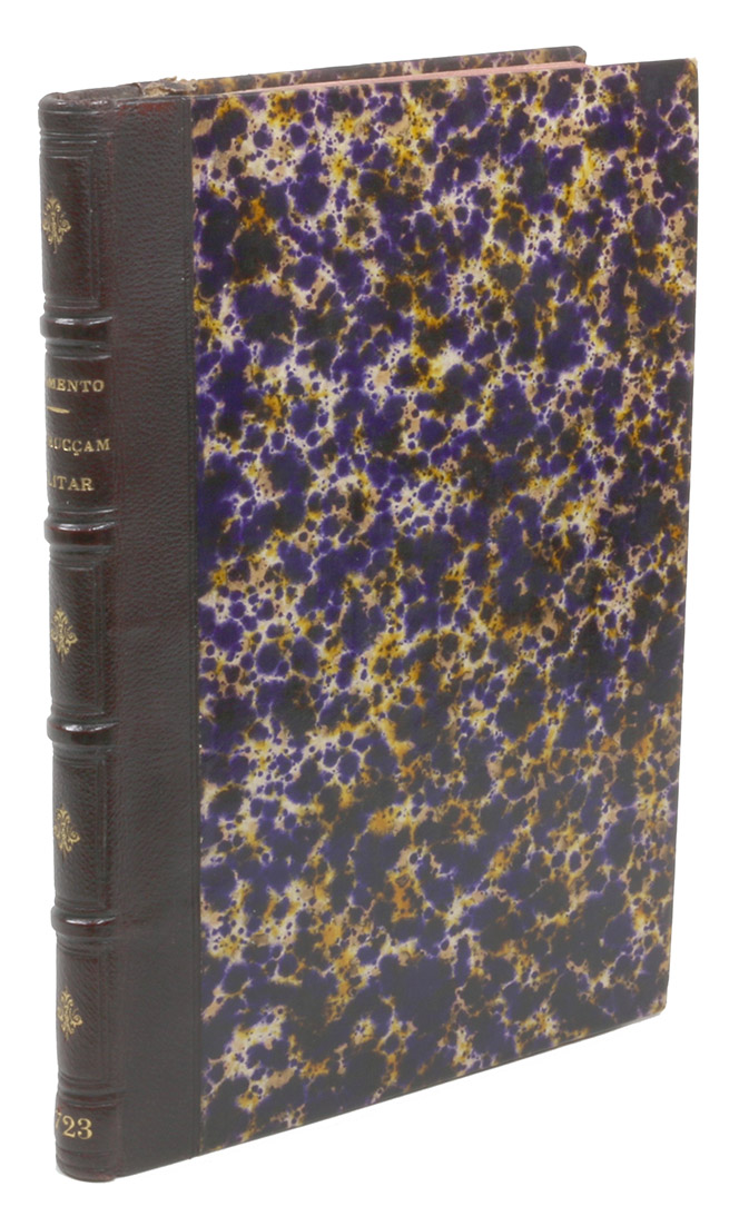 Lisbon, Ferreira, 1723. 4to. With a folding woodcut plate. Later half calf, marbled sides, gold-tooled spine and spine-label, marbled endpapers, red edges. [24], 157, [1] pp.