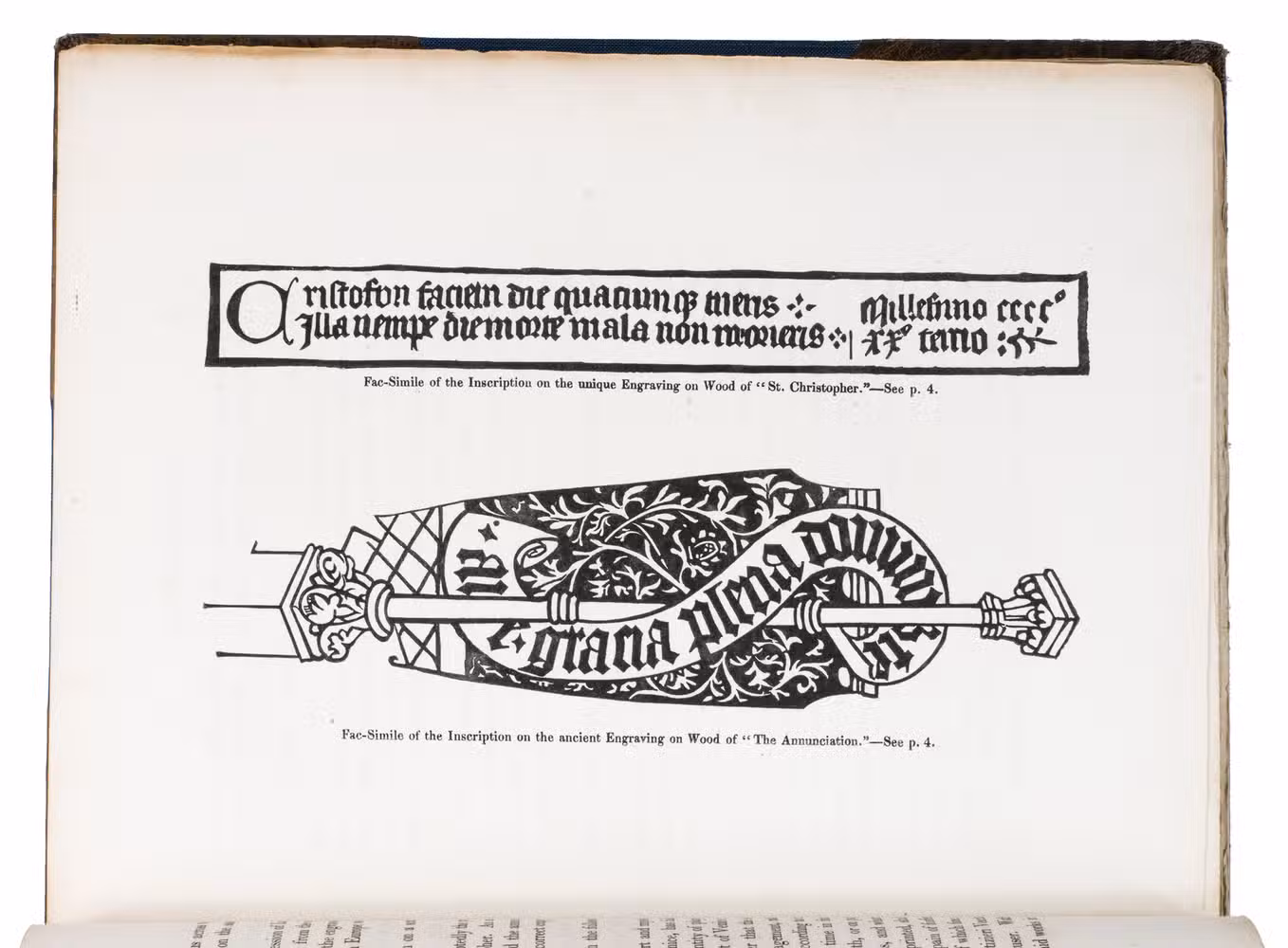 One of the 127 copies printed on Demy wove paper. A front endleaf has the handwritten signature of William Savage, accompanied by the copy number 58. With a bookplate on the front paste-down. Lacking the plate with the Earl Spencer's arms and one text leaf, but otherwise a very good copy, with the fore-edge and foot margins untrimmed. Some leaves slightly browned or faintly stained along the outer edge of the margins, not approaching the text or images. Spine and boards with faded patches. A pioneering work of colour printing and an essential reference for early 19th-century printing practices, with an emphasis on fine printing. Abbey, England 233; Bigmore & Wyman II, pp. 297-301; Printing and the mind of man (1963), part 2, 141.