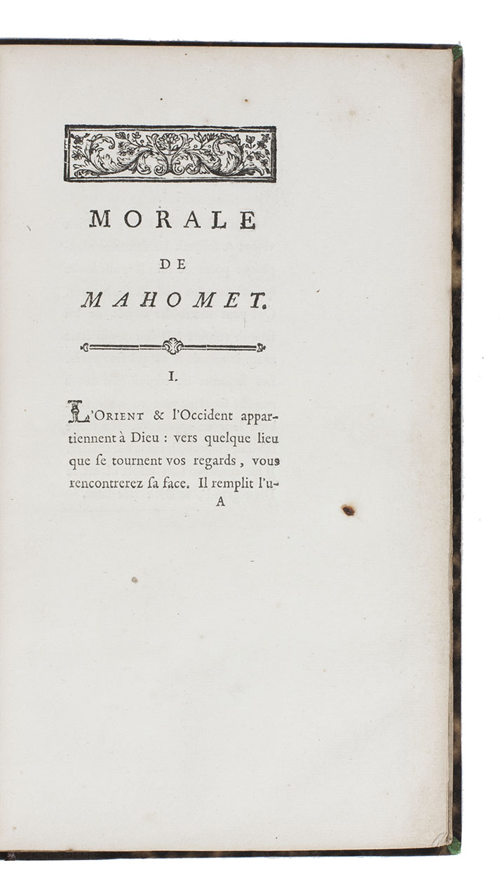 First edition of Savary's French summary of the ideas of Islamic religion, based on his 1883 French translation of the Qu'ran. In a certain sense it may be considered an epitone of the Qu'ran. While Savary's Qu'ran was published in Paris (by Knapen & fils and Onfroy), this summary was also published in Constantinople. While only a few scholars would read the entire Qu'ran, even once it was available in their own language, this summary gave a much larger European audience (as well as French speakers in the Ottoman Empire) a notion of Islamic religion. Savary (1750-1788) began his career as physician to the Court of Provence, but became a leading orientalist and spent much of the years 1776 to 1780 in Egypt before returning to France, where he produced his French translation of the Qu'ran.