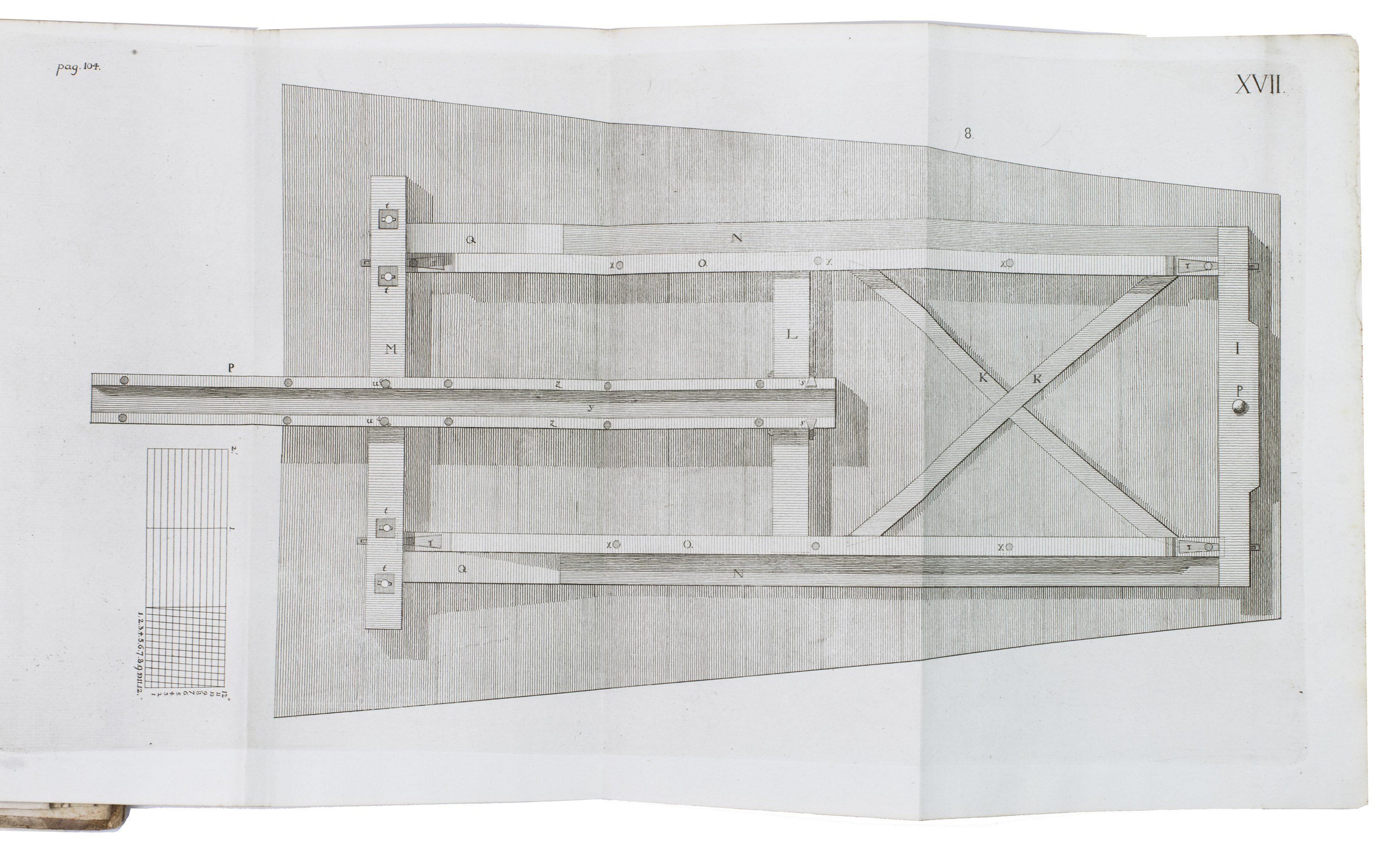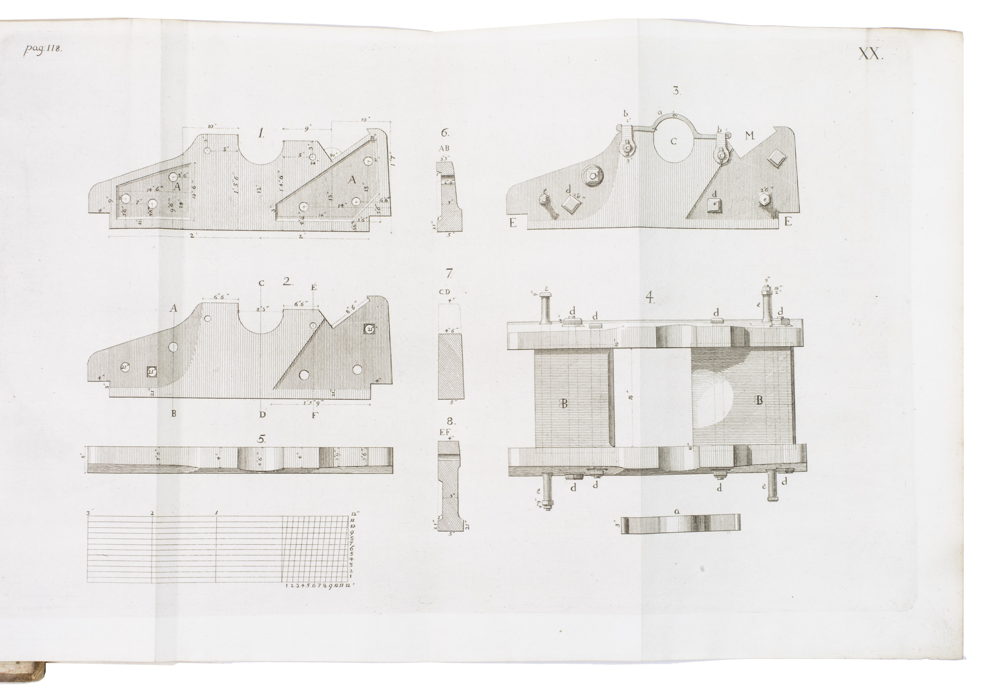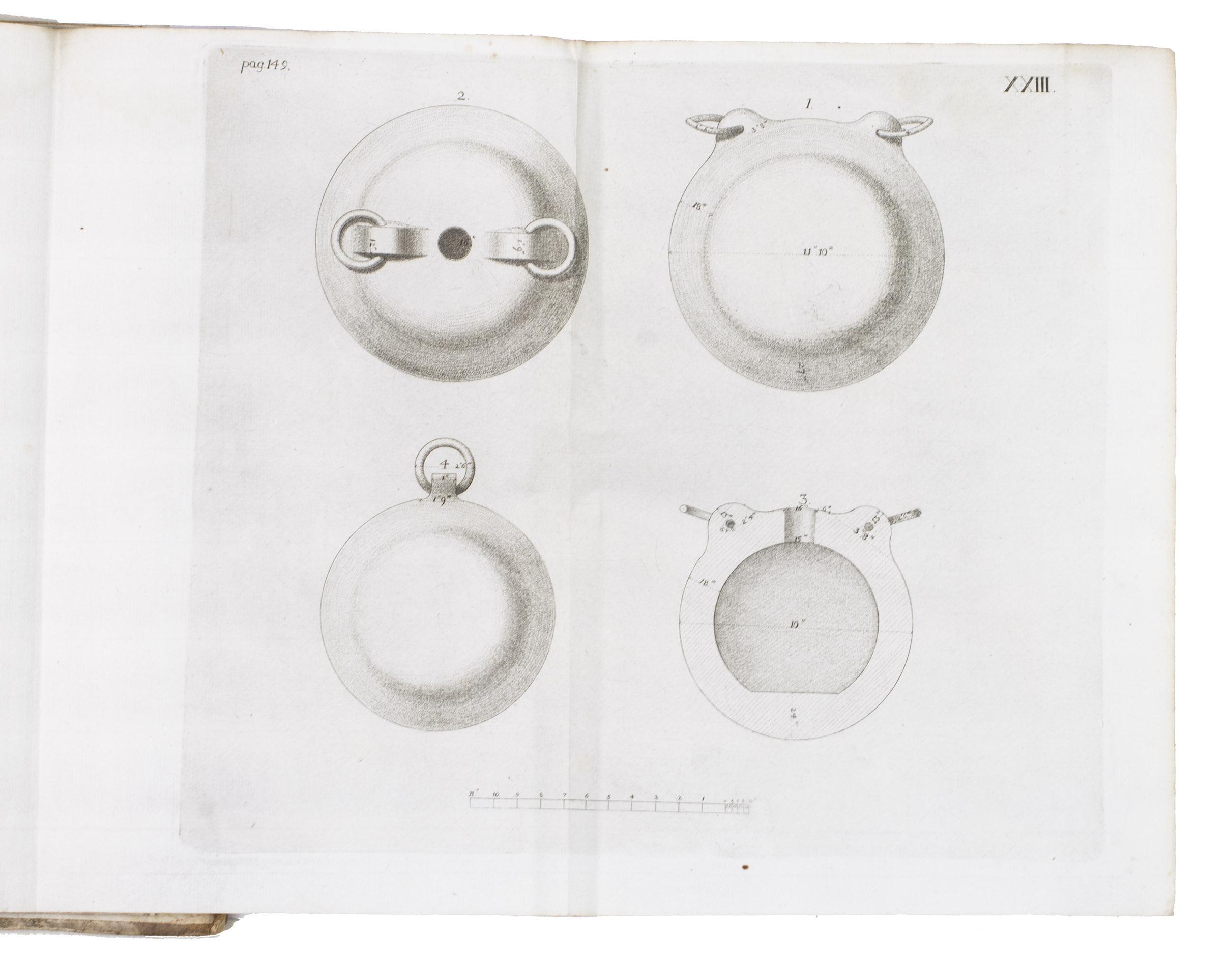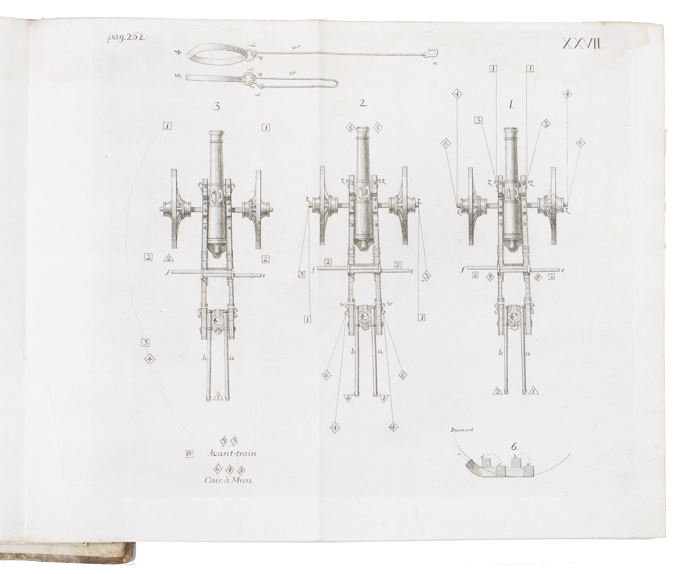 First edition of a work on the artillery of the French army, written by Heinrich Otto de Scheel, officer in the Danish army. It deals with the "artillerie nouvelle" following the changes made in the French army in 1765. The first part of the book deals with these changes individually, commenting on new regulations for the artillery during sieges, offence, defence, campaigns, etc. The second part sets out the various objections that had been made against the changes, with comments by the author. The plates depict different types of canons, machinery, siege engines, and more.