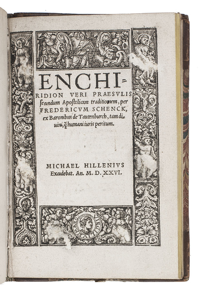 Four rare post-incunables clearly bound together with the intention to form a collection of texts in defence of the Catholic faith and its liturgy against Lutheranism and to serve as an example for good and just behaviour for priests to purify the widely corrupted practice. All treatises are the only editions published in the Low Counries in the period 1500-1540, all printed in Antwerp by the most important printers/publishers active there: Michiel Hillen van Hoochstraten and Johannes Steelsius. The present copy of the treatise by Schenck van Tautenburch even is the second copy recorded of the only known edition.