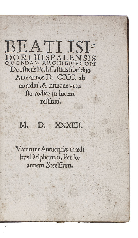 (2) ISIDORUS Hispalensis. De officiis ecclesiasticis libri duo ante annos D. CCCC. ab eo aediti, & nunc ex vetusto codice in lucem restituti.
