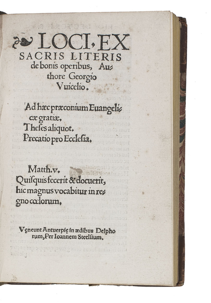 (3) WICELIUS, Georgius. Loci ex sacris literis de bonis operibus.Ad haec praeconium Evangelicae gratiae. Theies aliquot. Praecatio pro ecclesia. Matth. v. Quisquis fecerit & docuerit, hic magnus vocabitur in regno coelorum.