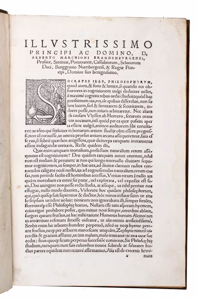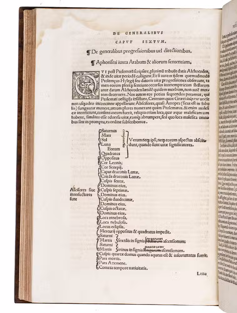 With a few manuscript annotations and corrections in black ink in the text, some water staining in the head margin of most text leaves, occasionally slightly soiled or ink stained, lower margin of 4 leaves (Z1, c4, d1 & f2) partly torn and strengthened with paper. Otherwise in good condition. Adams S681; DSB XII, pp. 199-200; Caillet 9997; Houzeau/Lancaster 4827; Rosenthal 3532; Thorndike V, pp. 367-369; USTC 630184 (32 copies); VD16 S 3470 (16 copies); Zinner 1884.