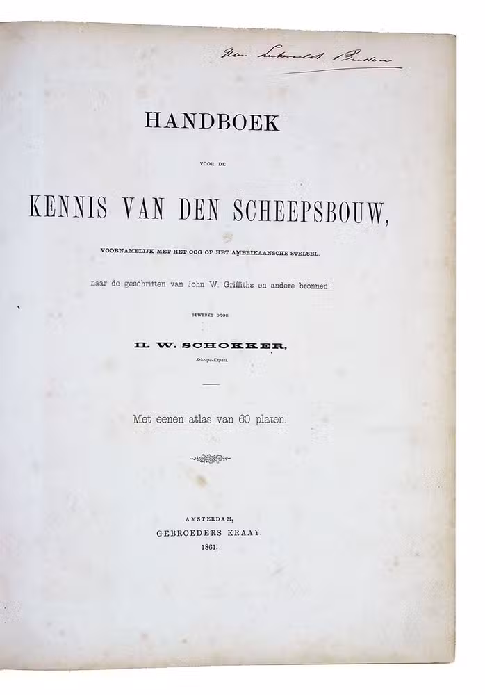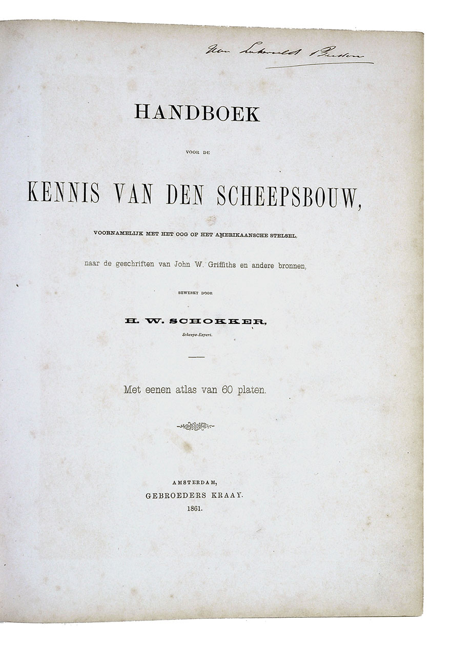 Handboek voor de kennis van den scheepsbouw, voornamelijk met het oog op het Amerikaansche stelsel, naar de geschriften van John W. Griffiths en andere bronnen, ... Met eenen atlas van 60 [=69] platen.