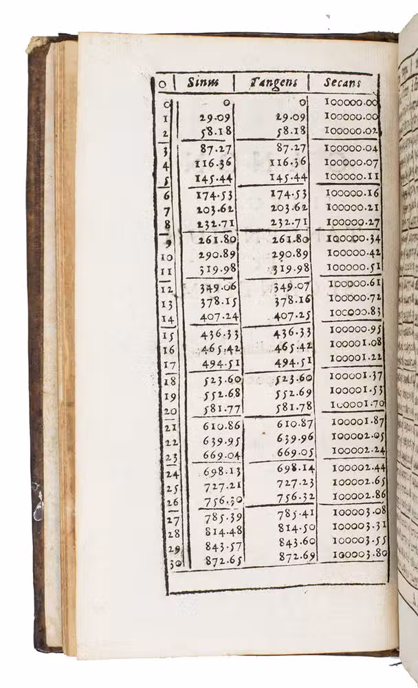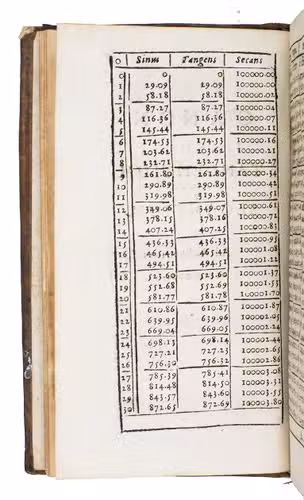 Table des sinus des tangentes et secantes pour le rayon 10000000.