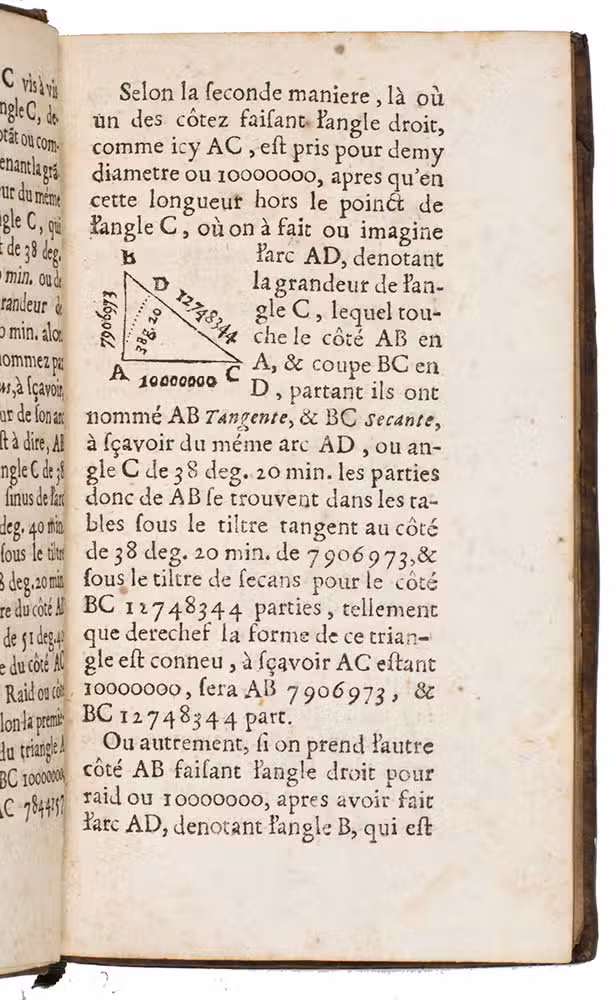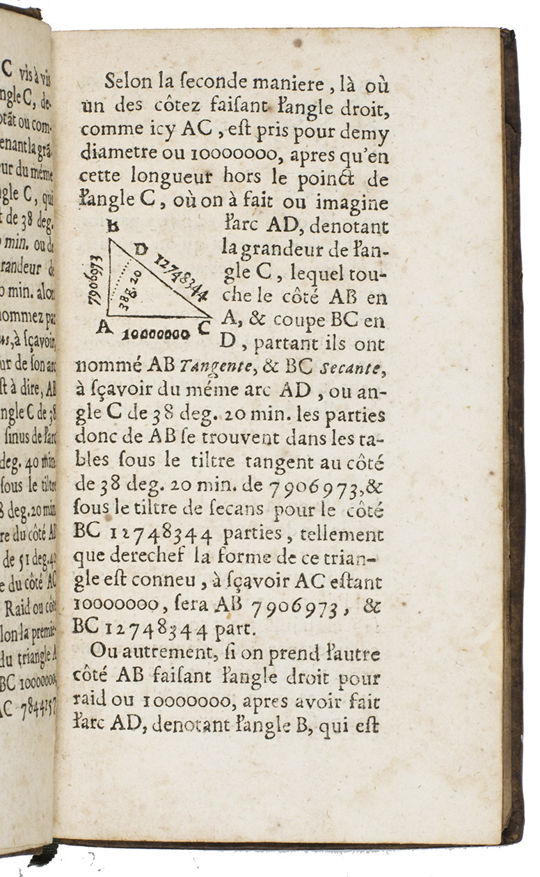 Rouen, David Berthelin et Jacques Lucas, 1672. 12mo. With a woodcut frontispiece, numerous tables and geometrical figures in the text. Contemporary calf, red title shield, red sprinkled edges. [240] pp.