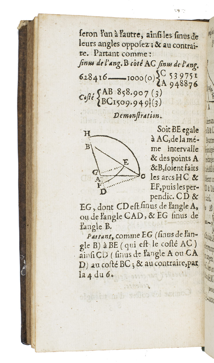 Very rare edition in French of Frans van Schooten the elder's influential mathematical work on triangulation, highly important for the development of cartography in the 17th century, amongst other things. The present edition has only 4 recorded copies in libraries worldwide according to WorldCat and Hoogendoorn's Bibliography of the exact sciences in the Low Countries. The frontispiece of the present Rouen edition was copied in woodcut after the engraved frontispiece of the first French edition that was publish by Willem Jansz Blaeu in 1627.