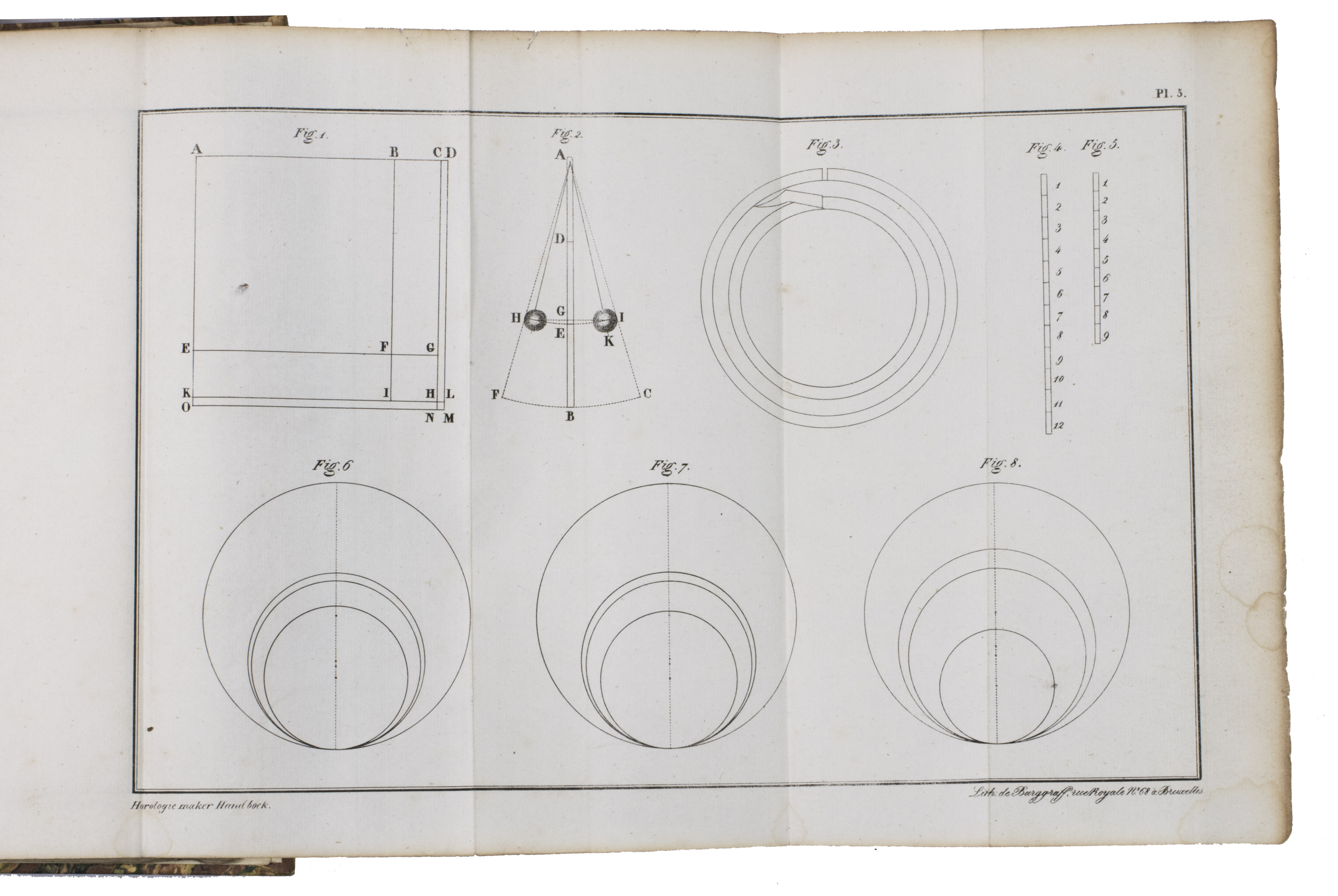 With the owners stamp of M. Passenier, Domburg, on the half title. The spine is slightly rubbed. Several faint water stains in the margins of the plates, occasional very minor foxing. Otherwise in very good condition. NCC 63936431 (8 copies); Saalmink, p. 1788; Tardy, Bibliogr. mesure du temps, p. 233; not in Bibl. Horlogère de Monsieur R.P.; WorldCat.