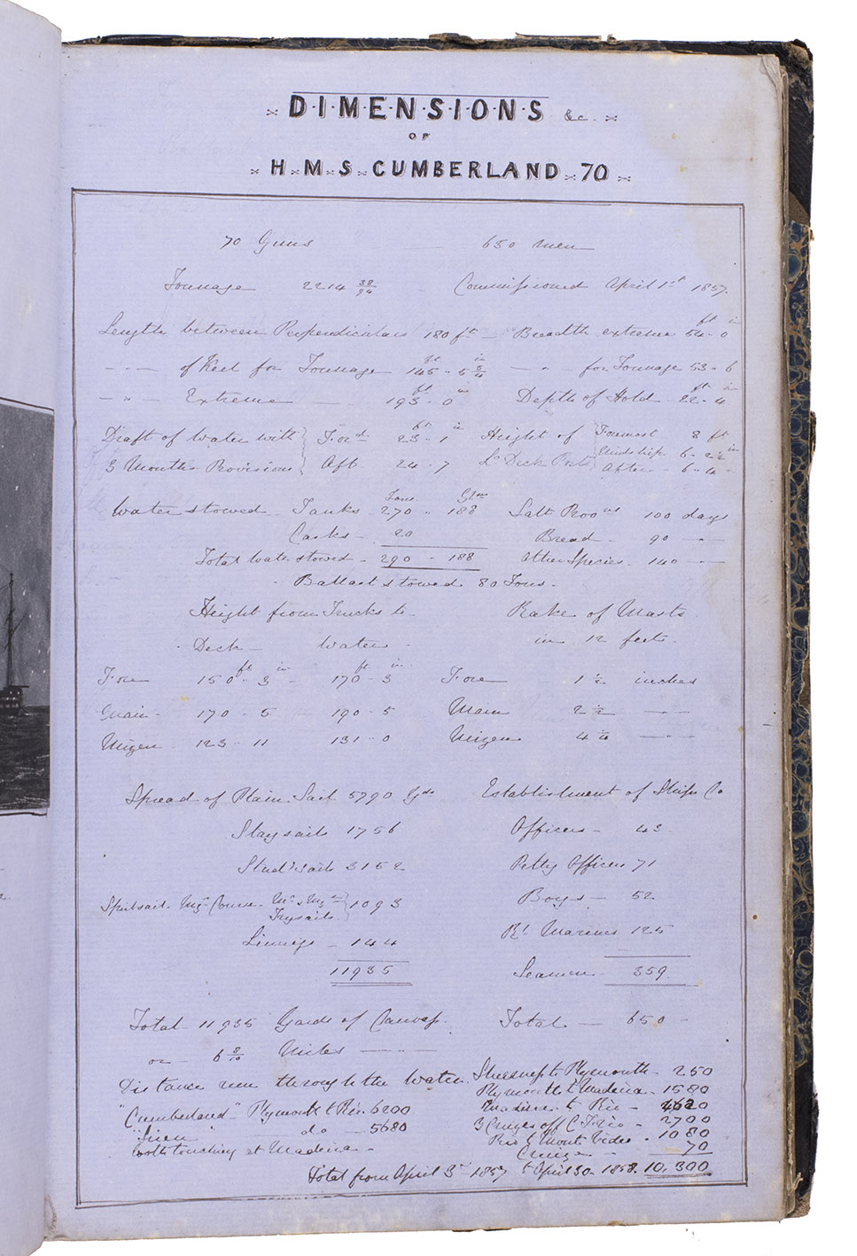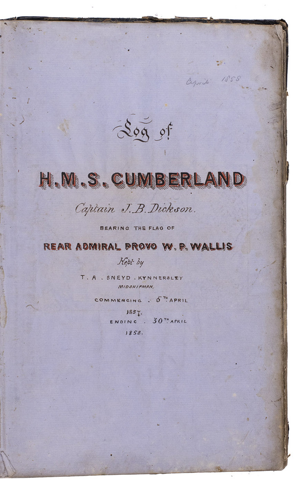 Log of H.M.S. Cumberland [commanded by] Captain J.B. Dickson bearing the flag of Rear Admiral Provo W.P. Wallis, ... commencing 5th April 1857, ending 30th April 1858.