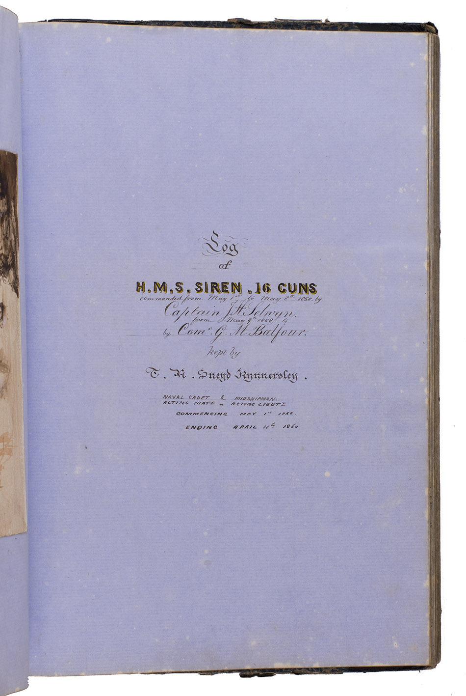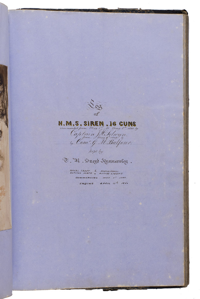 (2) SNEYD-KYNNERSLEY, Thomas Alfred. Log of H.M.S. Siren . 16 guns, commanded from May 1st to May 8th 1858 by Captain J.H. Selwyn, from May 9th 1858 to [27th July 1858] by Com[ande]r G.M. Balfour.