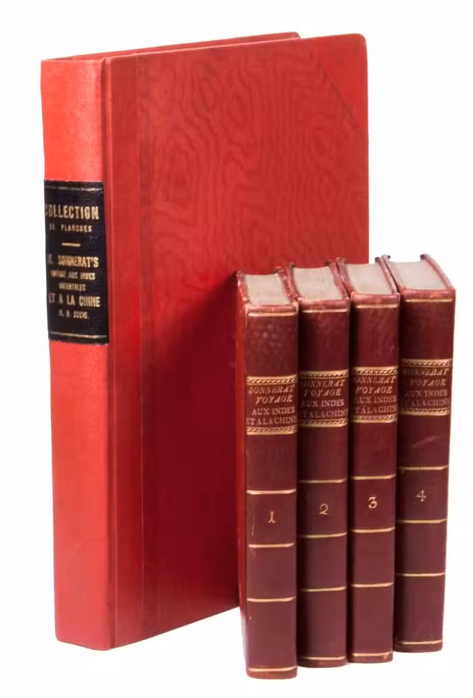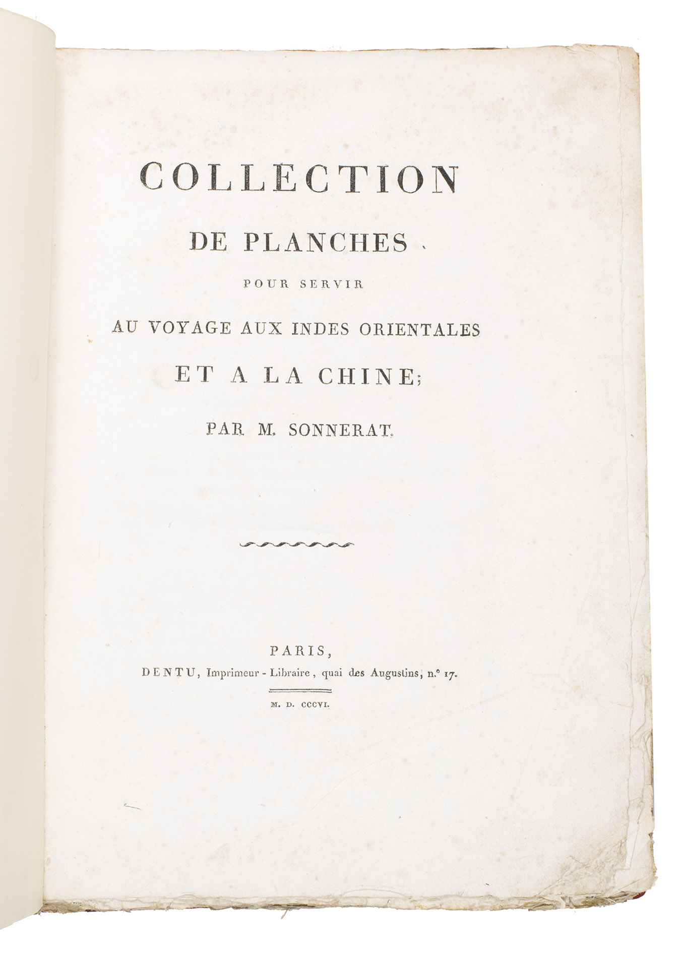A very good set, atlas volume untrimmed. Lust 354; Pritzel 8774; for Sonnerat: DSB XII, pp. 535-537.