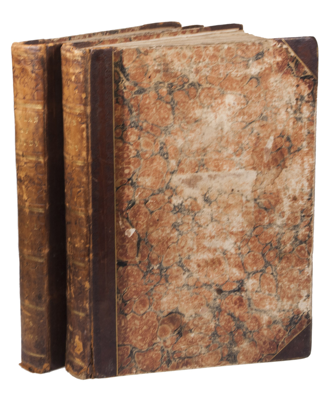 Each volume with the engraved bookplate of Charles Sotheby, with the rampant talbot crest from the Sotheby coat of arms, and also with the bookplate of the Dutch cartographic historian Cornelius Koeman (1918-2006). In very good condition, with only a small chip in one leaf and a tattered fore-edge in a few others. The bindings are rubbed and the spines worn, with a crack in the front hinge of vol. II, but the tooling remains clear. A detailed and fascinating picture of the teenage studies at the Royal Naval Academy in Portsmouth.