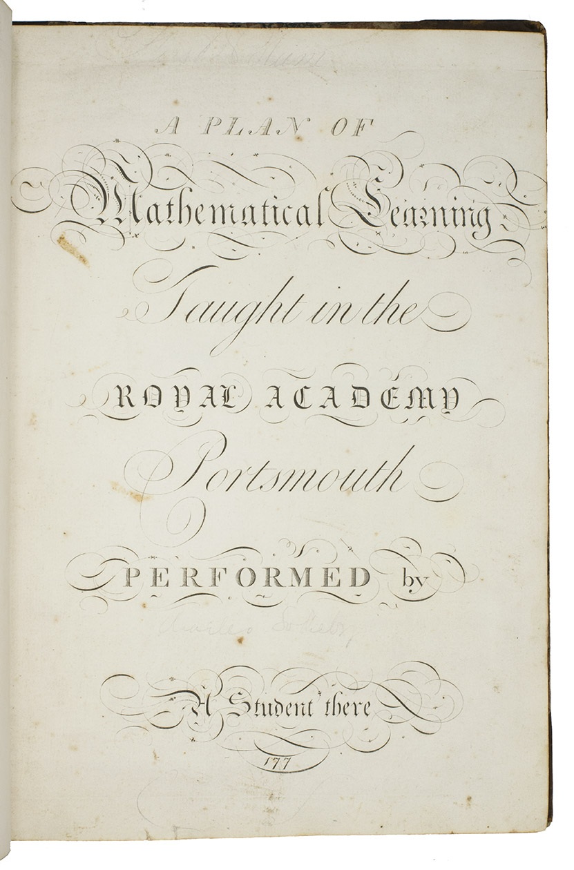 [engraved title-page:] A plan of mathematical learning taught in the Royal Academy Portsmouth performed by [in pencil: Charles Sotheby] a student there.
