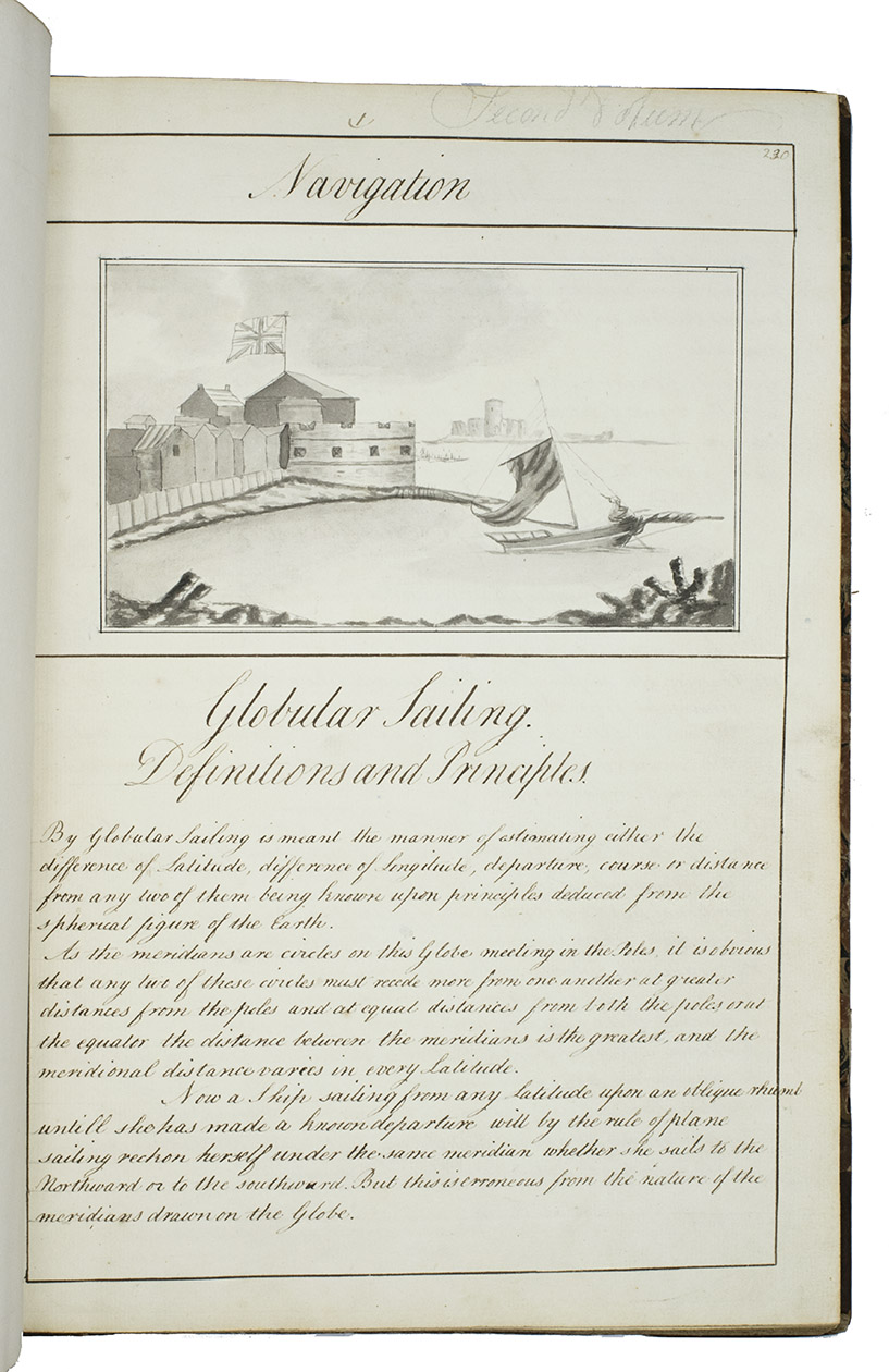 The present exercise book not only shows Sotheby's high level of skill and knowledge at an early age, it also provides a very clear and detailed picture of the training of British naval officers in the 1790s, as Napoleon began making his earliest plans to invade England.