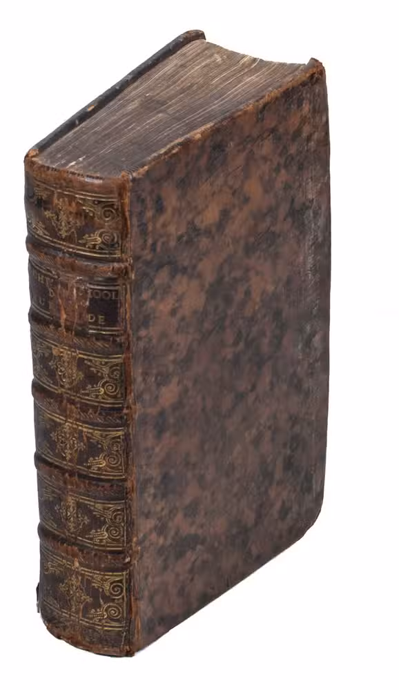 Rotterdam, Pieter de Vries, 1752. 4 parts in 2 volumes, bound as 1. 8vo. With engraved allegorical frontispiece, a letterpress general title-page, 4 part-titles. Contemporary mottled calf, richly gold-tooled spine. [20], 483 pp.