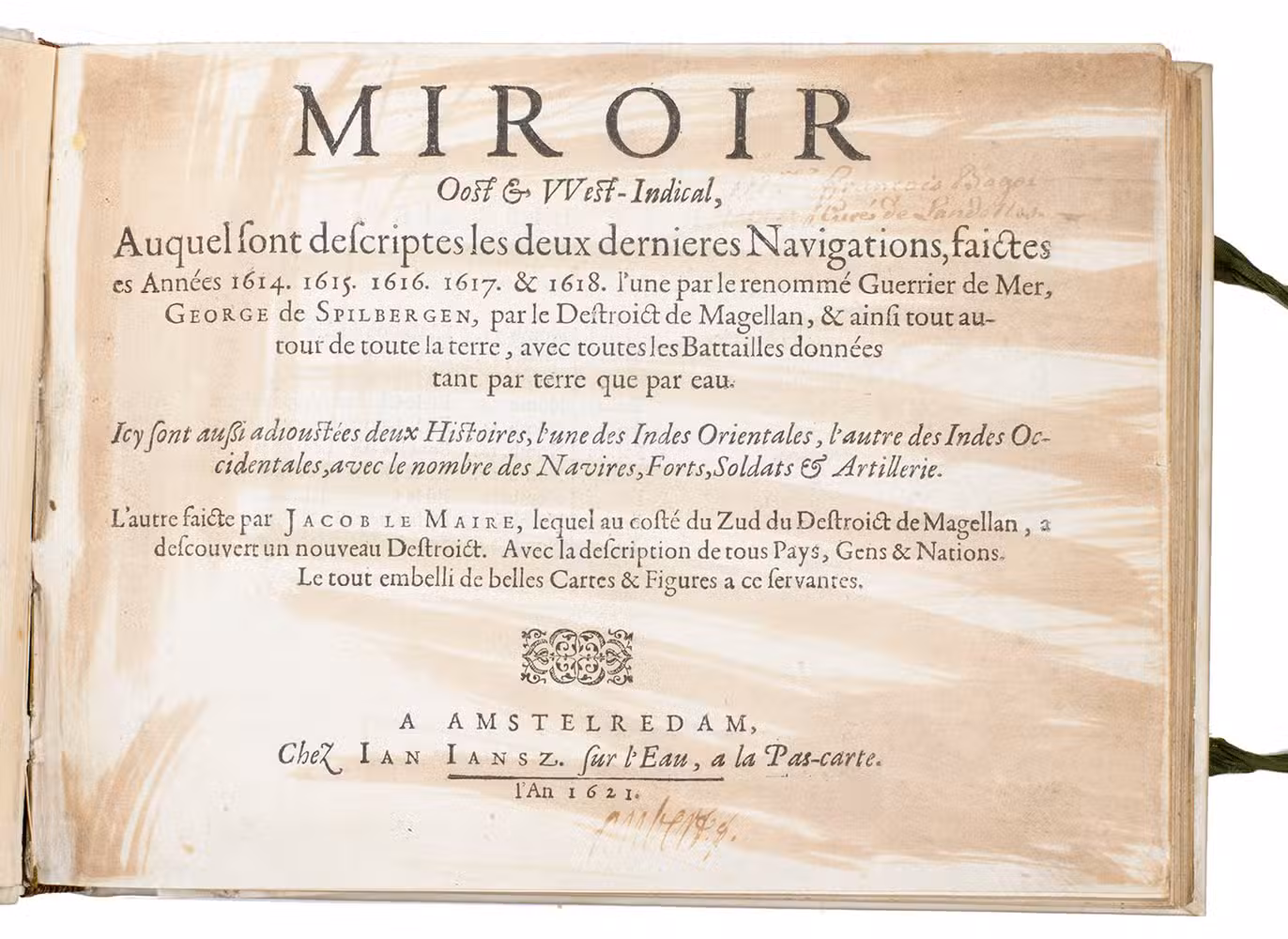 Miroir Oost & West-Indical, auquel sont descriptes les deux dernieres navigations, faictes es années 1614. 1615. 1616. 1617. & 1618.
