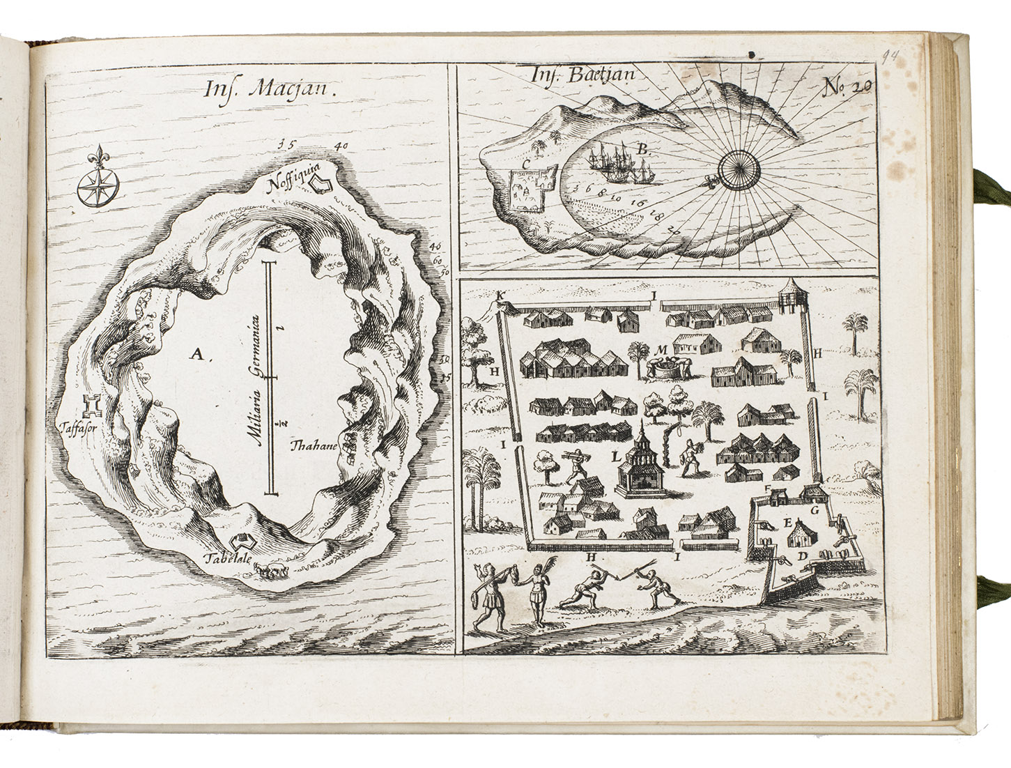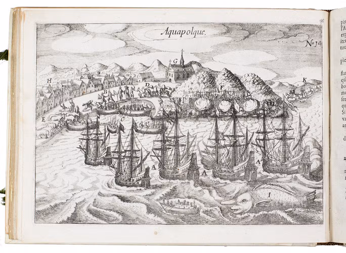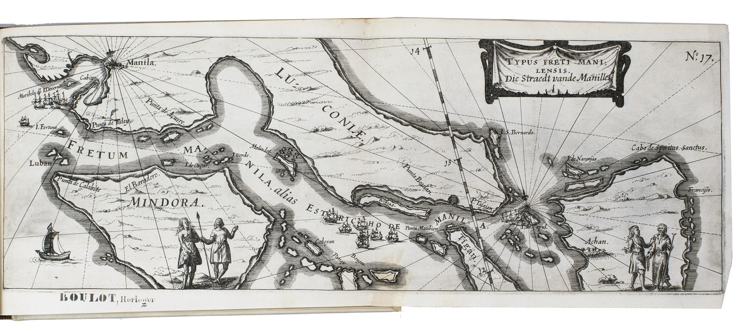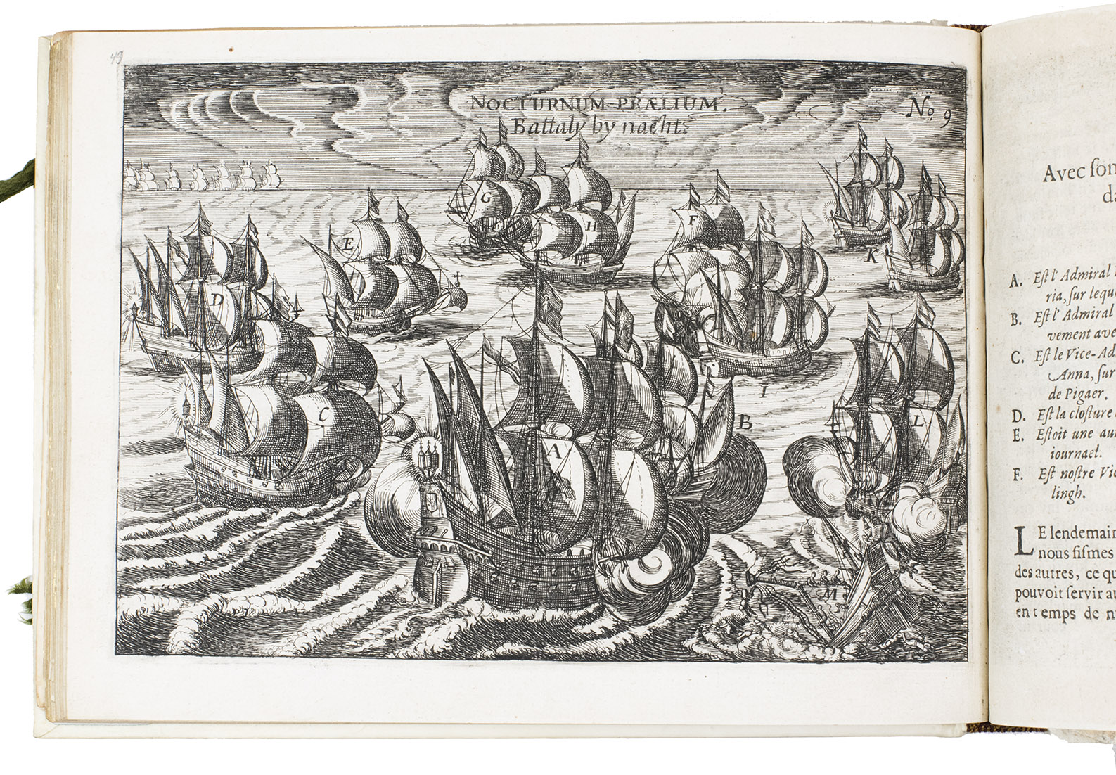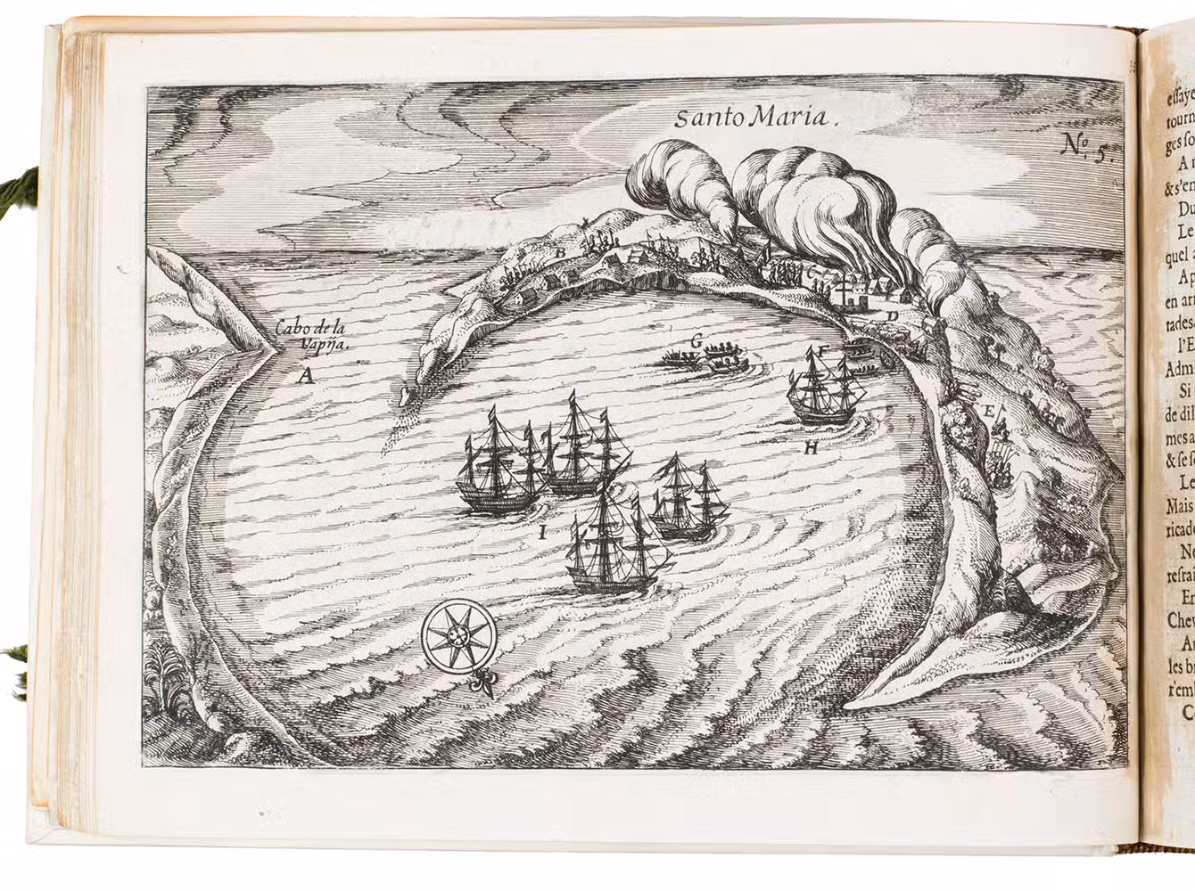First and only edition of the French translation of one of the bestsellers of illustrated 17th-century travel literature, describing one of the most famous early voyages around the world by Joris van Spilbergen (1568-1620), a veteran Dutch East Indies naval officer-turned-pirate, undertaken from 1614 to 1618. A short survey of another of the most important early voyages around the world, by Schouten and Le Maire in the years 1615 to 1617, is added at the end (pp. 117-172) with drop-title "Navigationes Australes". It reports Le Maire's proof that Tierra del Fuego is an island and his discovery of what is still called the Strait of Le Maire, an alternative route to the Pacific. Rich in ethnographic detail, the numerous illustrations in the Miroir include oversized penguins, llamas and an Andean condor with a nine-foot wing span. Naval battles, beleaguered Spanish settlements, and newly discovered islands are also depicted in detail, making the work a valuable compendium of adventure on the high seas during the Age of Discovery.