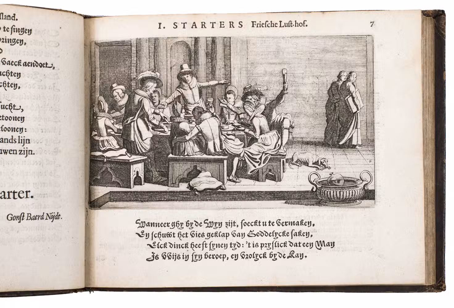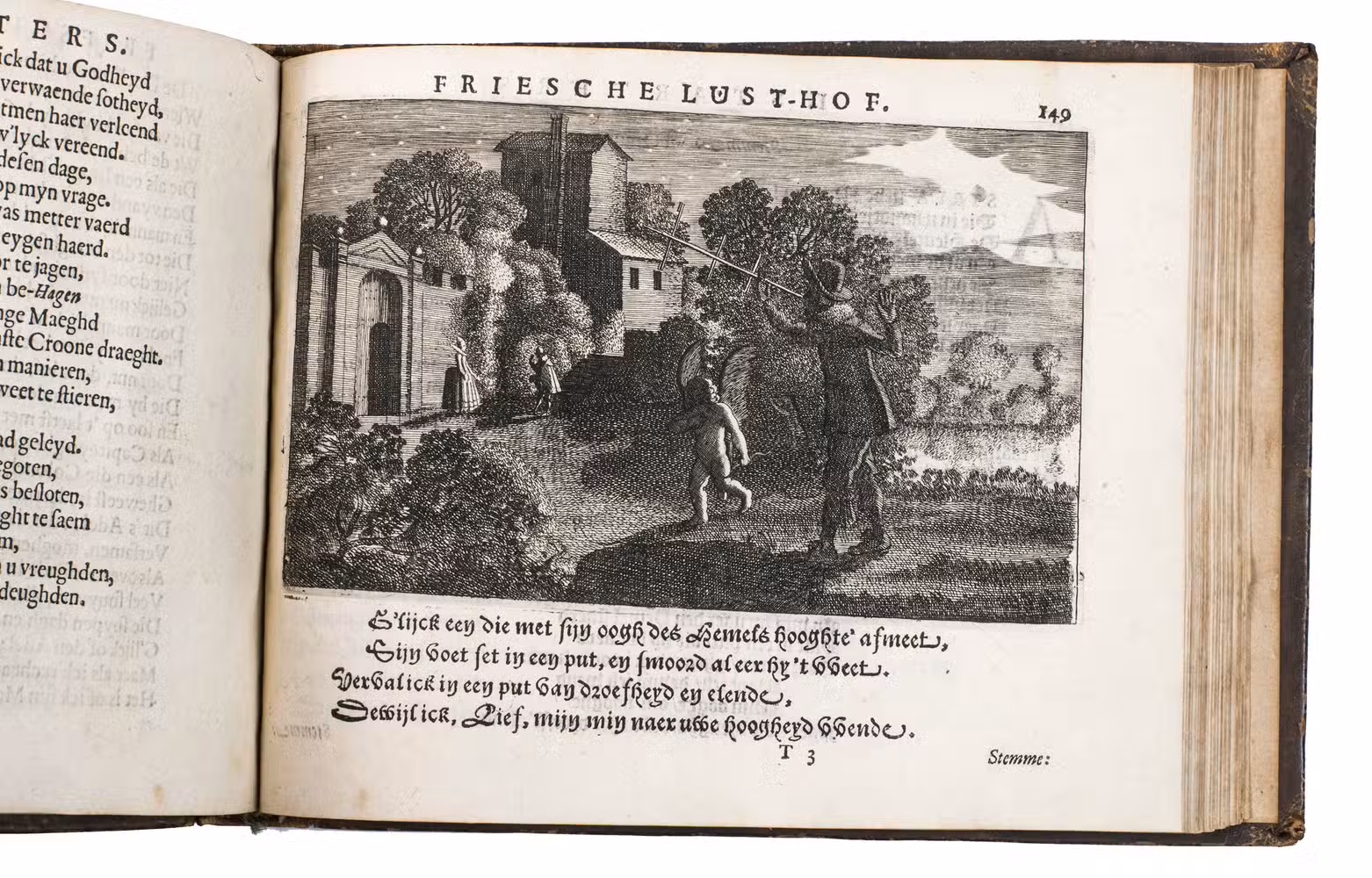 Friesche Lust-hof, beplant met verscheyden stichtelijcke minne-liedekens, gedichten, ende boertighe kluchten. Den derden druck op nieuws vermeerdert ende verbetert ... Midtsgaders oock noch verrijckt ende verçierd met schoone kopere figuren; ende by alle onbekende wysen de noten, ofte musycke gevoeght.