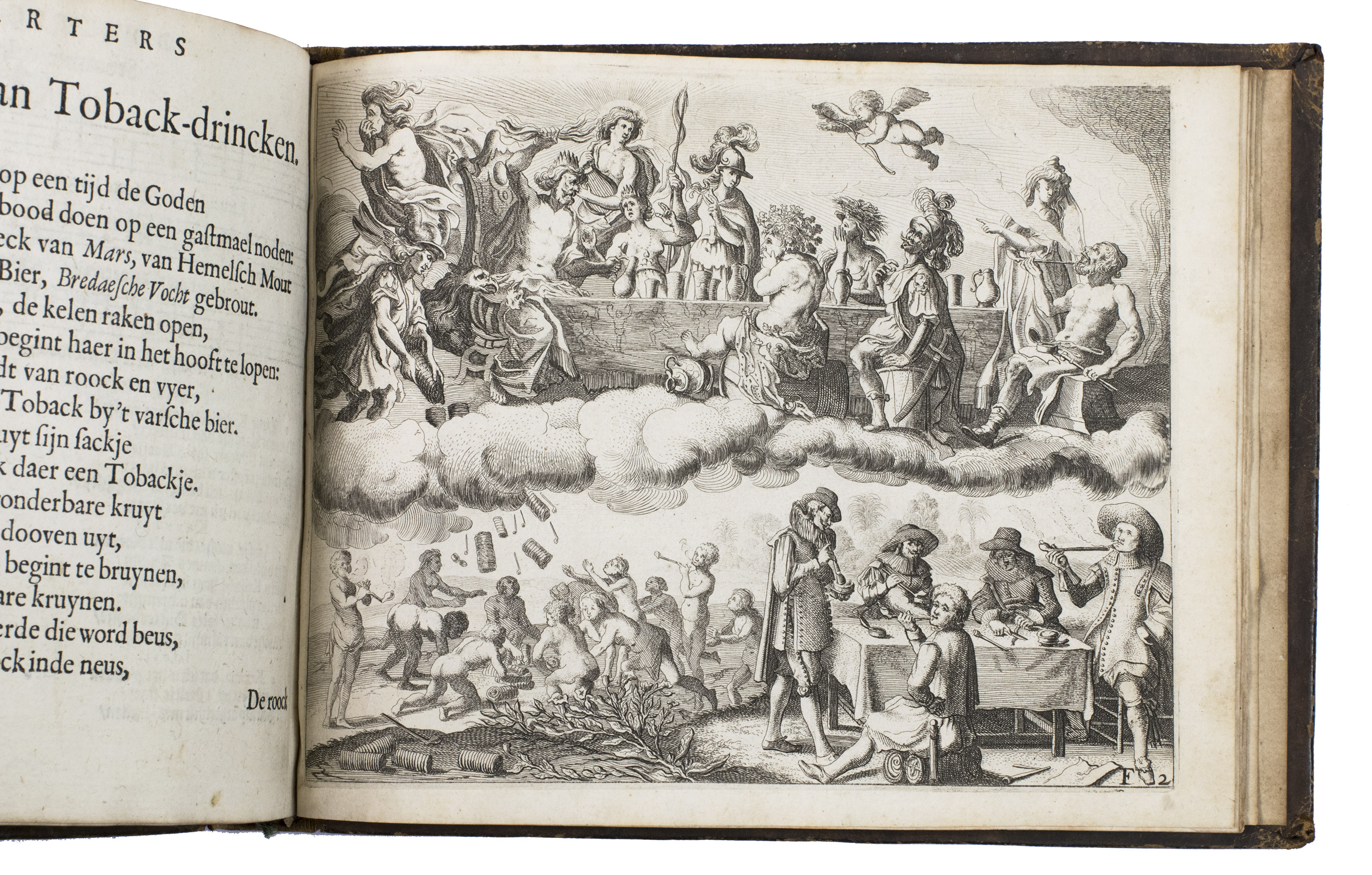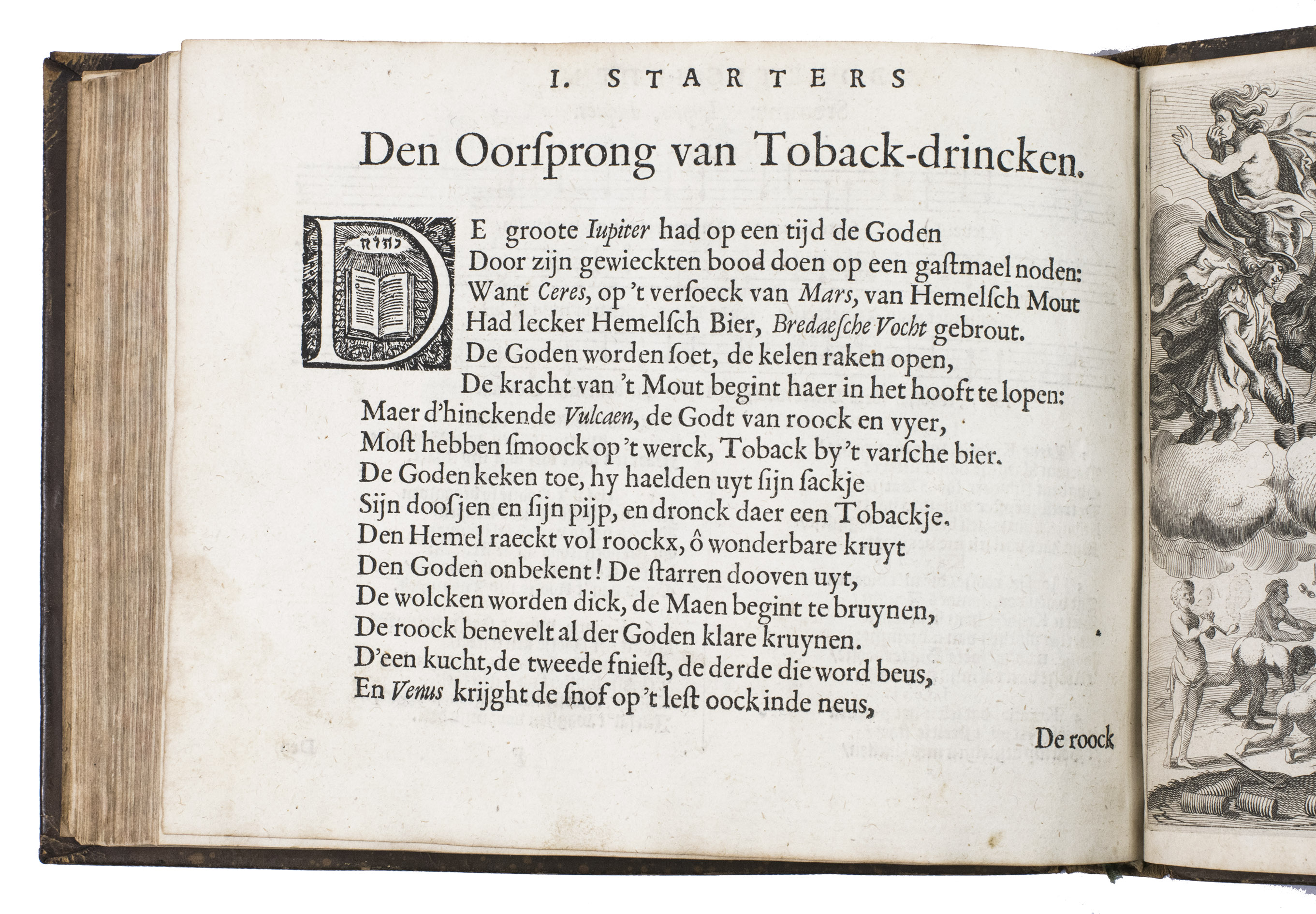 Beautifully produced in an elegant oblong size, and printed in various types, including a fine Civilité type. The present work contains wedding songs, love songs, pastoral songs, drinking songs, occasional poems, as well as a song about the origin of the smoking of tobacco. The present edition is the third, which has been enlarged in both text and illustrations.