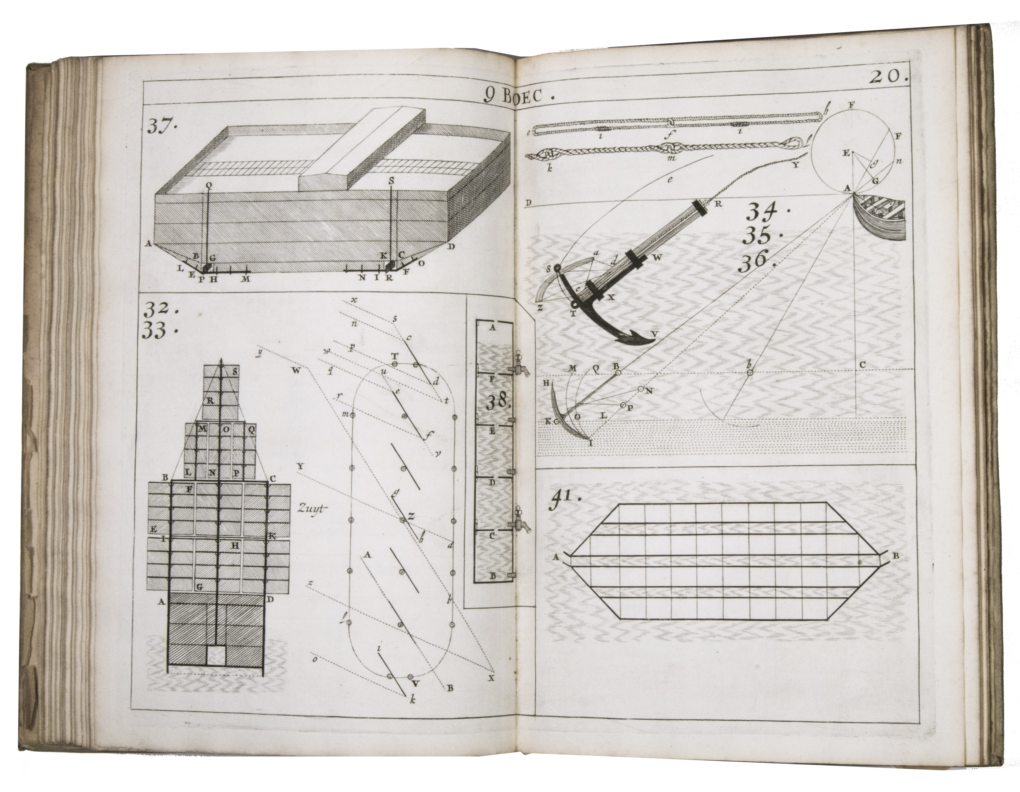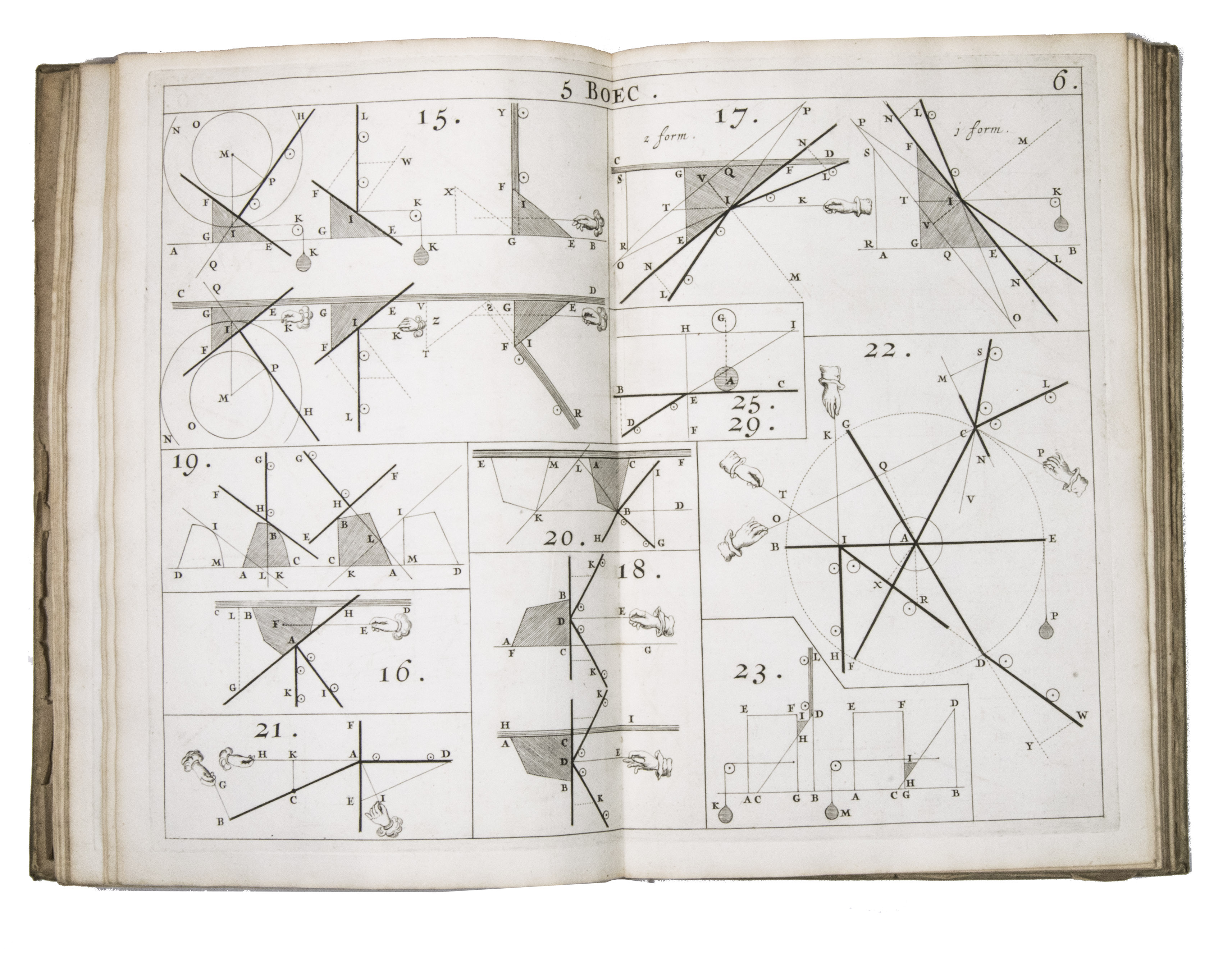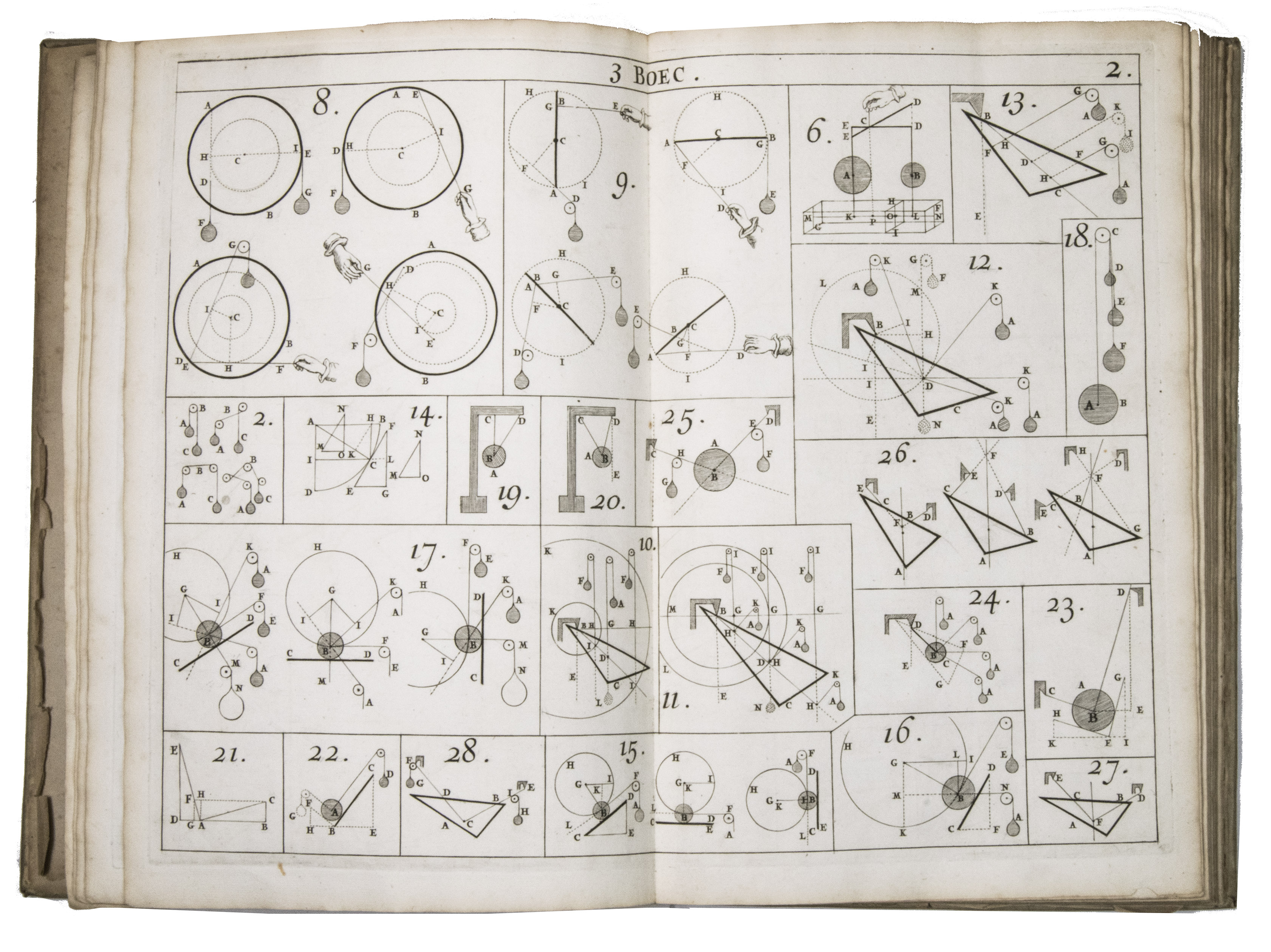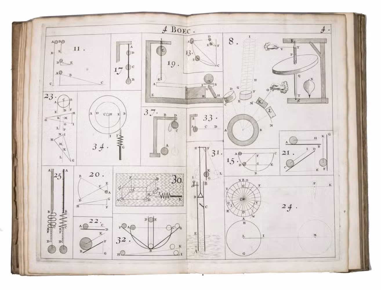 Rare first and only edition of the plate book published as the illustrative companion to Hendrik Stevins (1614-1668) Wisconstich filosofisch bedryf (1667). The work contains 29 double-page engraved plates illustrating a wide range of mechanical and hydraulic devices, including gear mechanisms, water-works, sluices, Archimedean screws, and other technical constructions connected with early modern hydraulic engineering and mechanics.