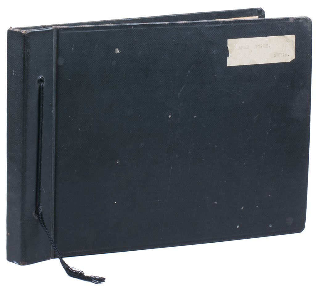 Syria, [ca. 1918-ca. 1921]. Oblong album (18 x 26 cm). An album containing 14 black and white photographic portraits (mostly about 17 x 12 cm) plus a smaller print of one. Mounted in a ca. 1930 album of black paper leaves (boards covered with black cloth). 16 ll. (album).
