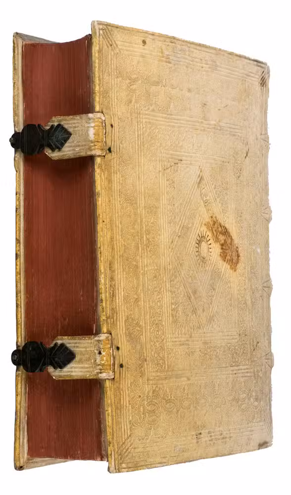 With the bookplate of Adolf Eberle (dates unknown) mounted on the front pastedown, a partially crossed out contemporary owner's inscription on the title page. A brown stain on the back board. The leaves and plates are browned and foxed, a stain on p. 755-756 (not affecting the text). Otherwise in good condition. De Backer & Sommervogel, 7, col. 1611; BM STC German S2875; VD17 3:310413T; USTC 2640857; cf. Neumann, Geschichtsschreibung als Kunst, pp. 201-264.